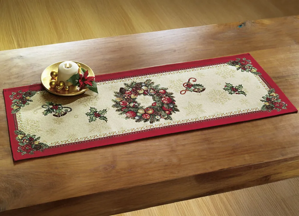 Sehr stimmungsvoll wirkt diese Tisch- und Raumdekoration mit weihnachtlichen Motiven, die Ihnen die ganze Winterzeit hindurch große Freude bereiten wird. Hochwertiger und sehr strapazierfähiger Gobelin aus 65% Polyester und 35% Baumwolle. Waschbar bis 30 °C.