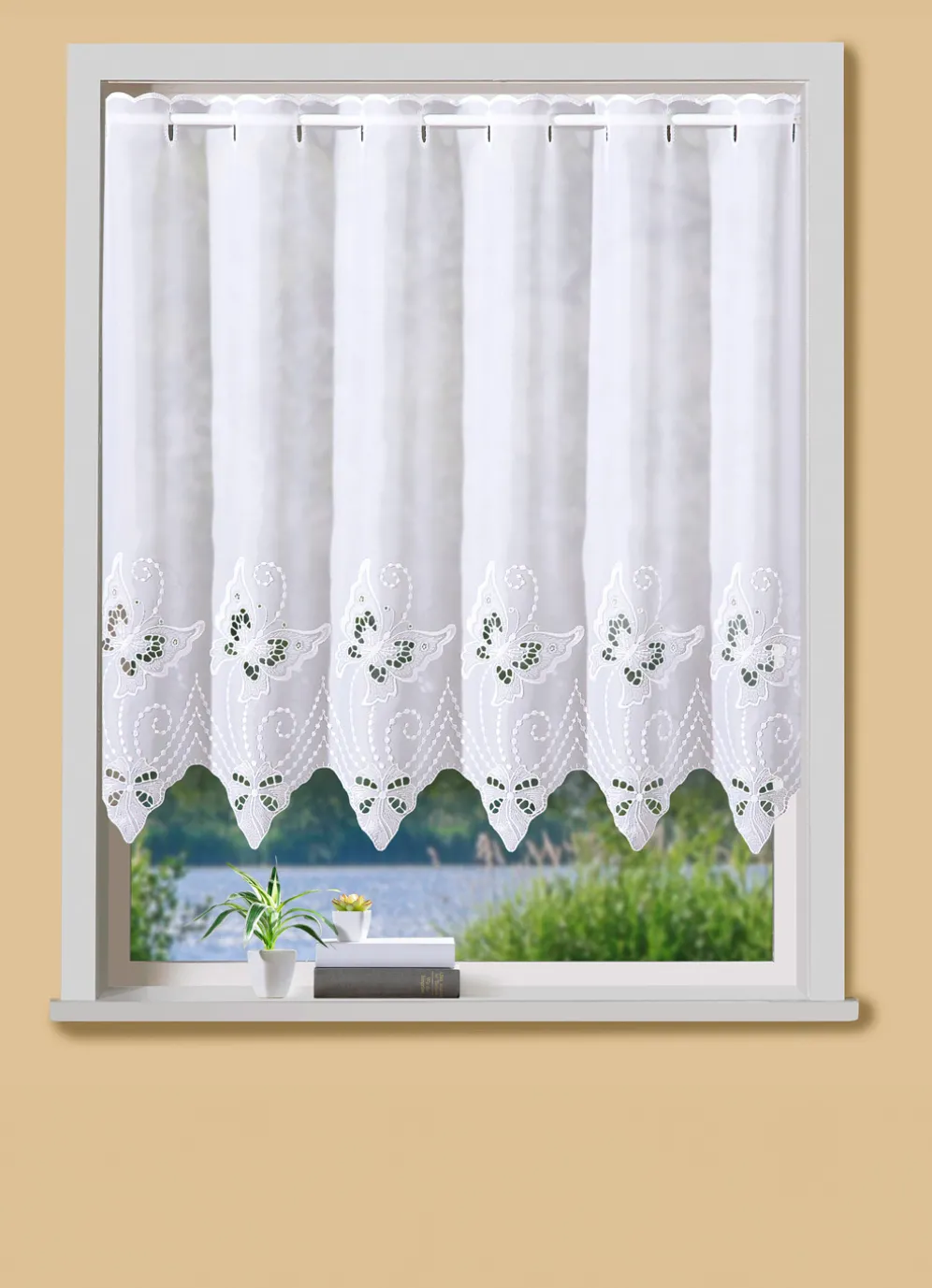 Mit Stangendurchzug sowie gesäumten Seiten. Qualität: Voile aus 100% Polyester.