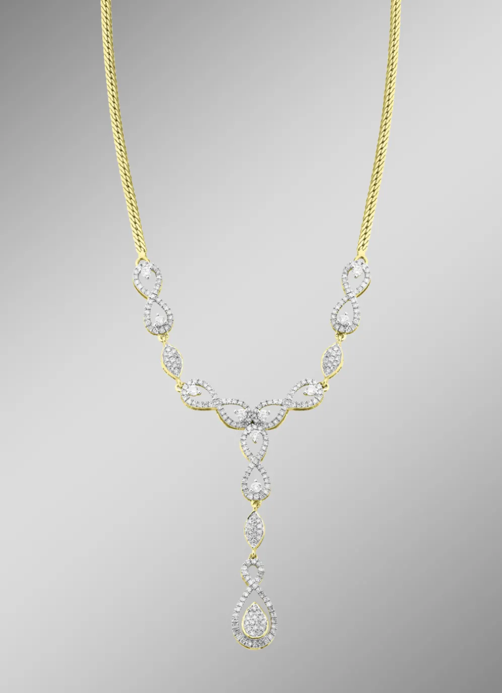 Das zarte Gelbgold verleiht dem Collier einen warmen Glanz. 255 strahlende Brillanten in Weiß: Mit insgesamt 1,00 Karat verleihen sie dem Schmuckstück eine atemberaubende Brillanz.