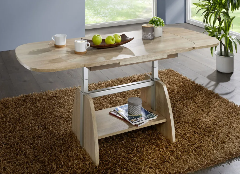 Höhenverstell- und ausziehbarer Couchtisch mit Lift-Mechanik