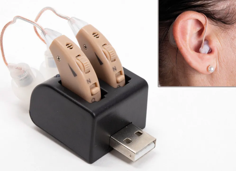 Nehmen Sie wieder entspannt an Gesprächen teil und fühlen Sie sich im Alltag wieder sicherer, z. B. weil Sie unterwegs den Straßenverkehr besser hören. Das gibt Sicherheit und erhöht die Lebensqualität. Wiederaufladbar dank USB-Stecker. Damit sparen Sie Kosten und den kniffligen Aufwand mit den kleinen Batterien herkömmlicher Hörverstärker. Sie erhalten 2 Hörverstärker. Inkl. USB-Ladestation und Silikonaufsätzen