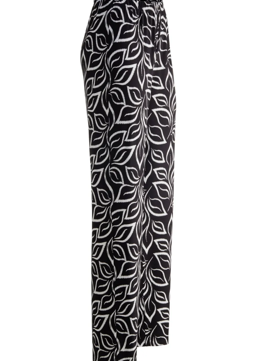 In ausdrucksstarker Dessinierung präsentiert sich diese weich fließende Hose in Schwarz-Weiß: bequeme Weite und in komfortabler Schlupfform mit Dehnbund rundum. Innenbeinlänge ca. 78 cm. Fußweite ab 54 cm.