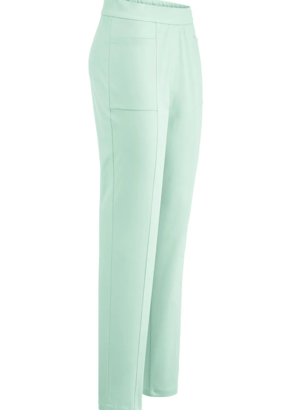 Hose mit abgesteppten Teilungsnähten in Mint und in Größe 40.