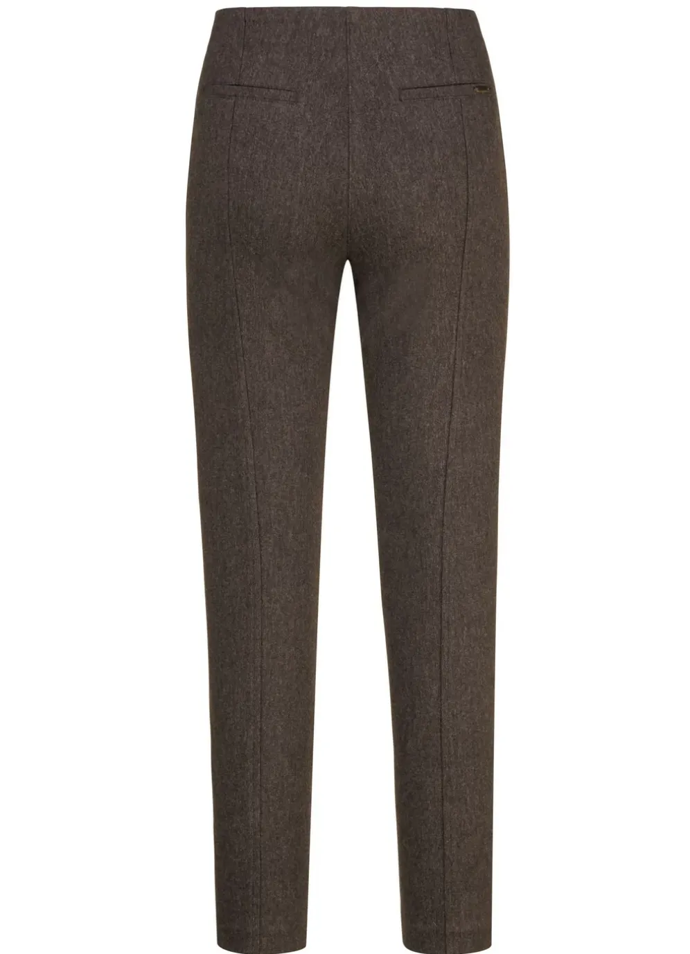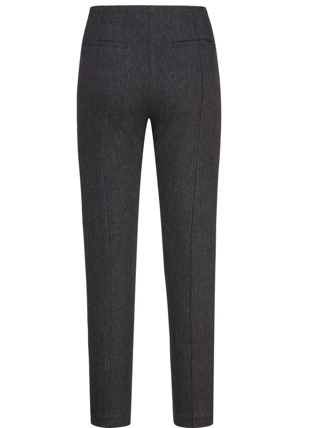 Ansprechende Hose in ausgezeichneter Qualität mit angeschnittenem Bund, glatt anliegend dank der innenliegenden Gummibund-Einlage, Reißverschluss-Taschen vorne, streckende Teilungsnähte im Vorder- und Rückteil sowie paspelierte Gesäßtaschen. Innenbeinlänge ca. 77 cm, Fußweite ab 28 cm.