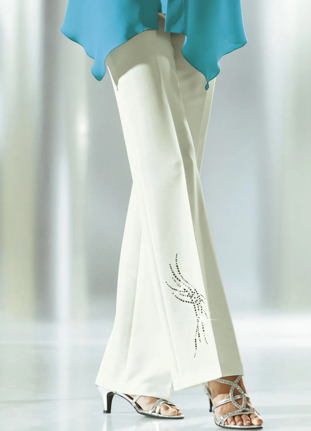 Hose mit schmückendem Strasszier-Motiv in Ecru und in Größe 18.