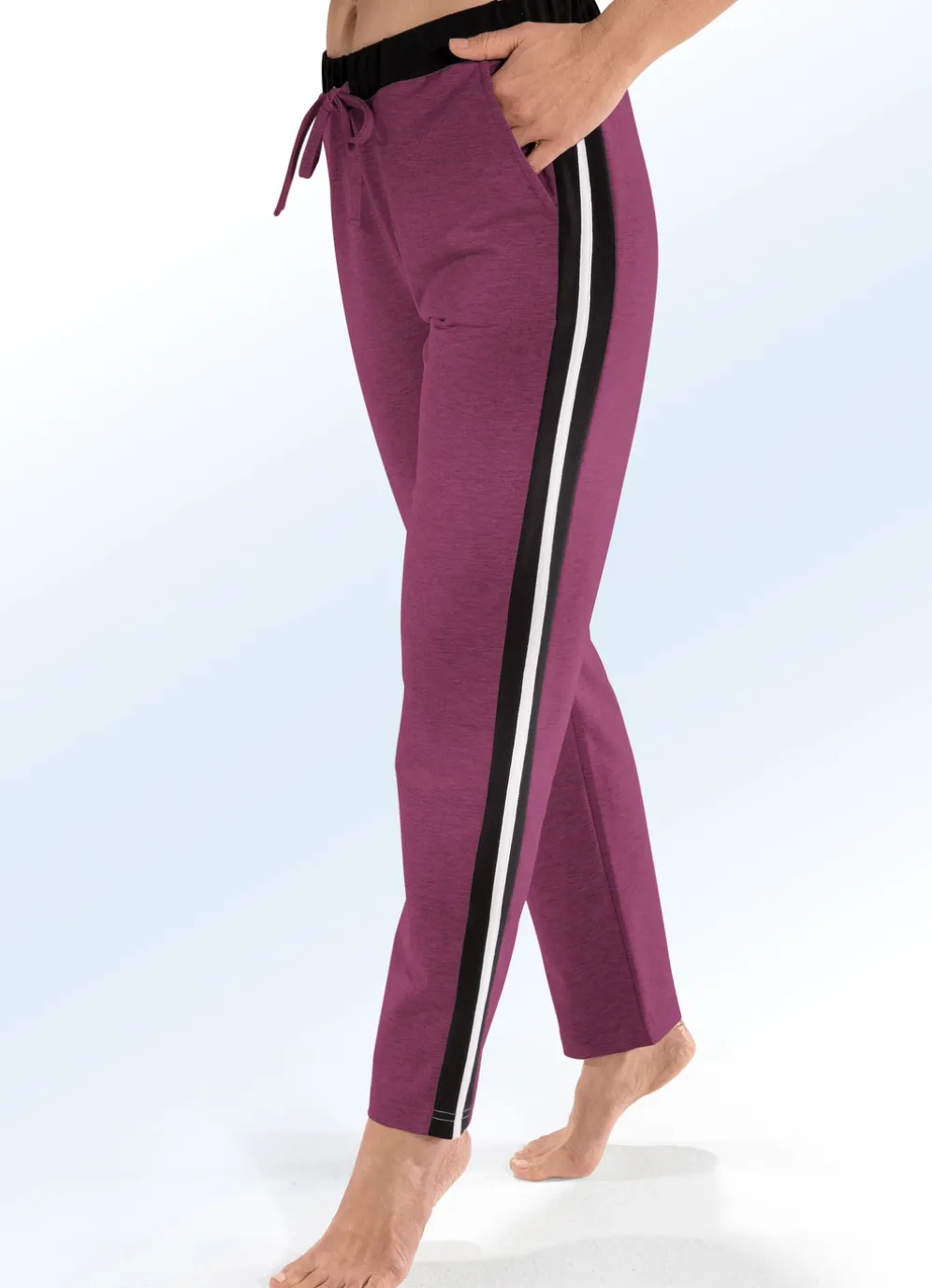 Bequeme, grau-melierte PLANTIER-Hose in langer Form: mit Tunnelzugband am schwarzen Dehnbund rundum, zwei Seitennahttaschen sowie schwarz-weißen Kontrasteinsätzen entlang den Seitennähten.