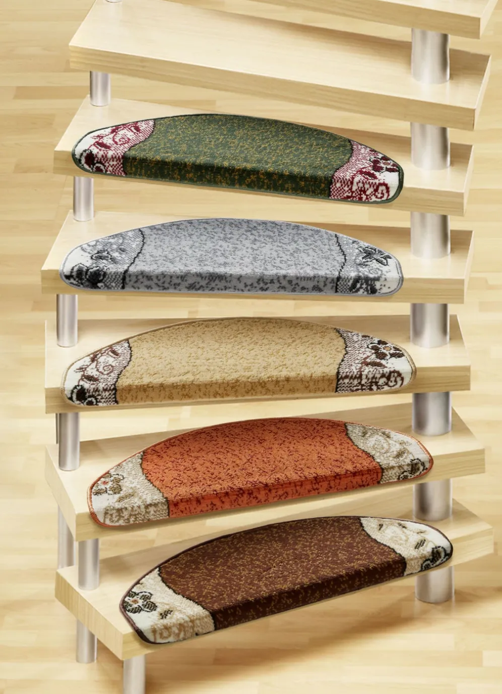 Hübsche, gewebte Stufenmatten. Florhöhe 7 mm. Qualität: 100% Polypropylen.