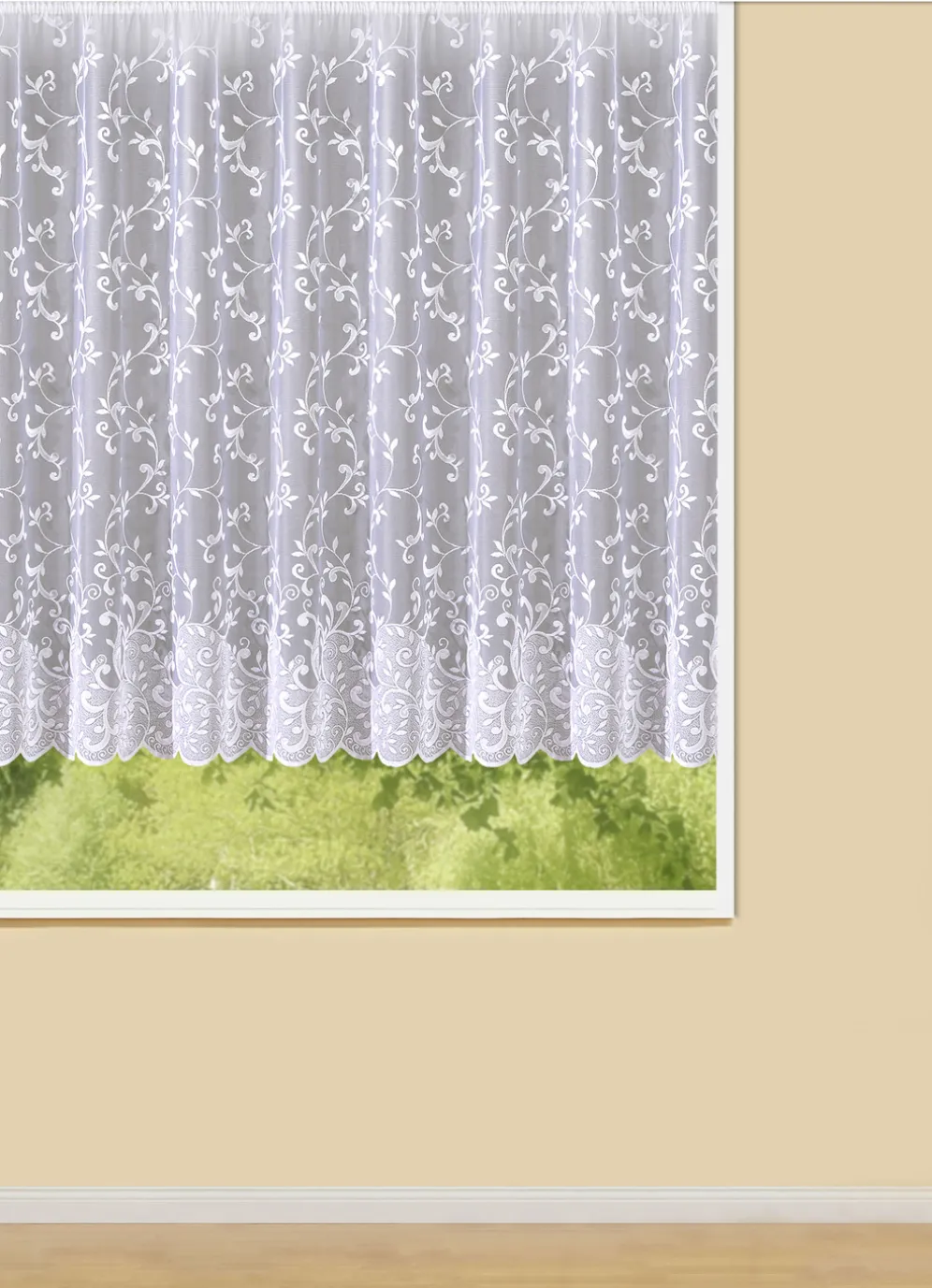 Hübscher Blumenfenster-Store in Größe 140 (125×300 cm) und in Weiss.