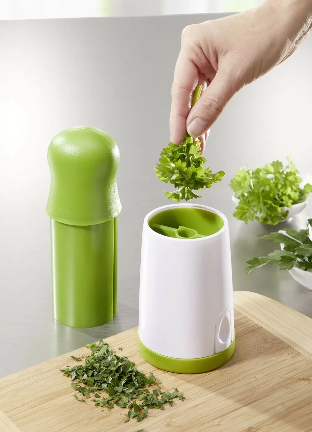 Im Handumdrehen frisch gehackte Kräuter in Weiss-Grün.