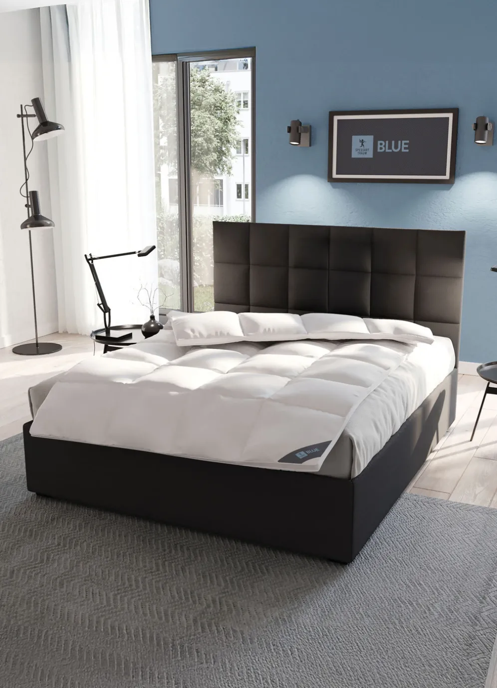 In Deutschland hergestelltes Daunenprogramm aus dem Hause Spessarttraum in der Ausführung Blue Kissen und in Größe 121 (40/ 80 cm).