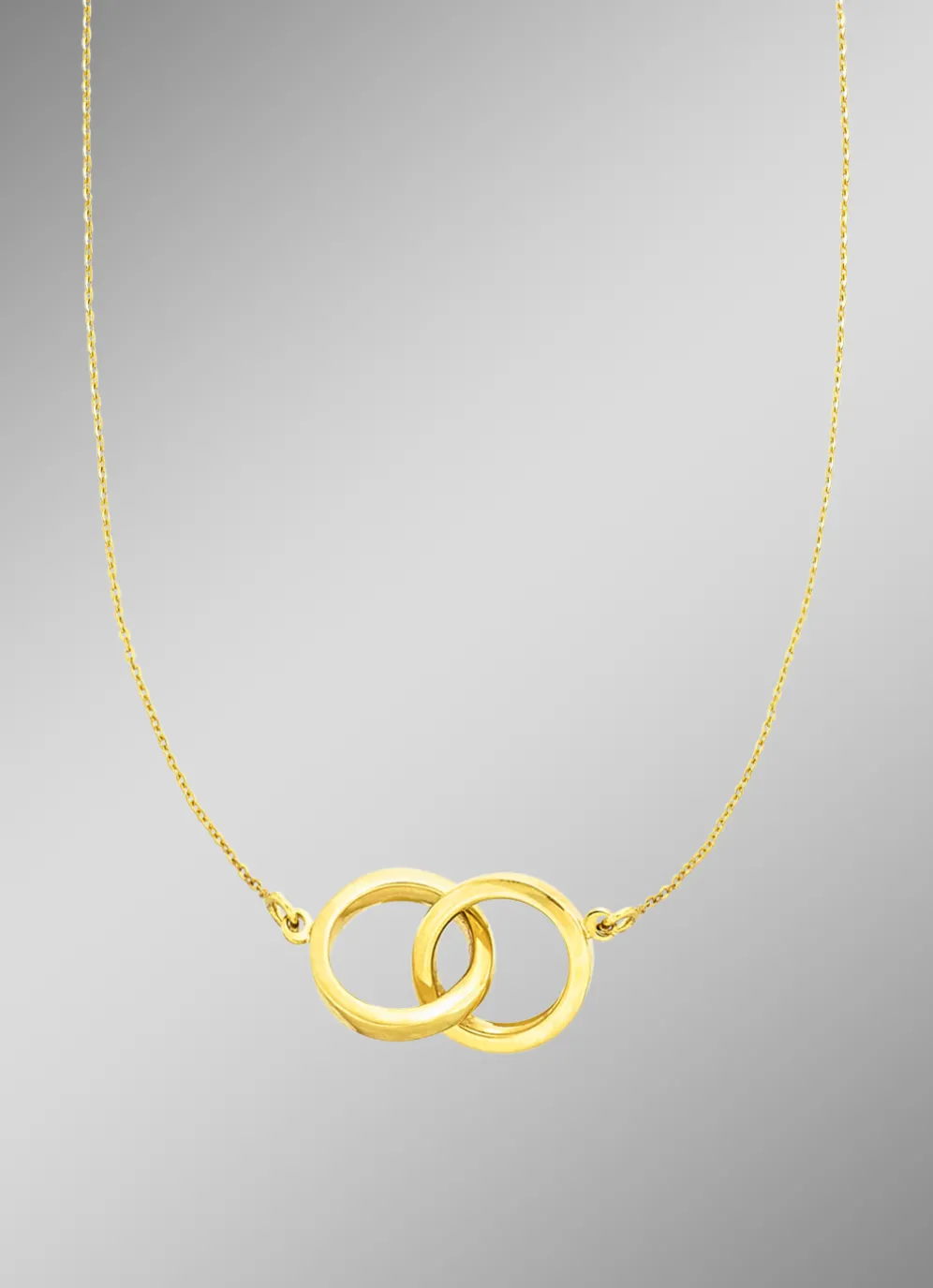 In schönem Design: Halskette mit 2 Ringen in der Legierung Gold 375/- fein.