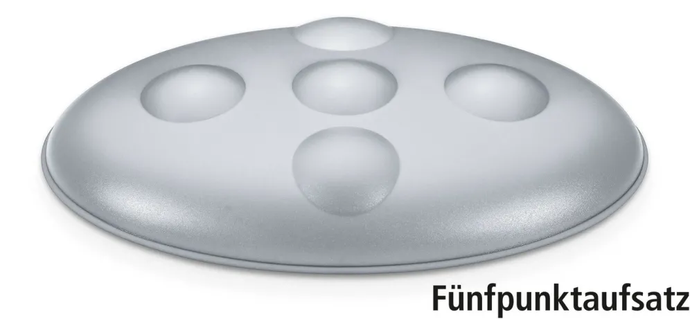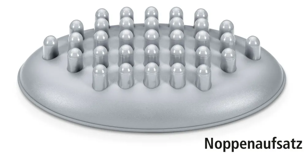 - 2 auswechselbare Massageaufsätze (Noppenaufsatz, Fünfpunktaufsatz)