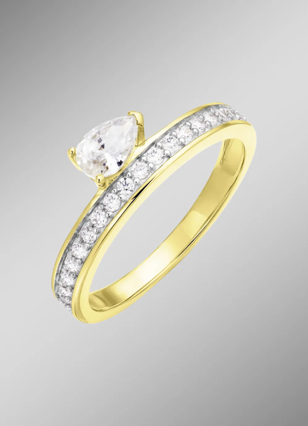 Interessanter Damenring mit Zirkonia in der Legierung Gold 375/- fein und in Größe 210.