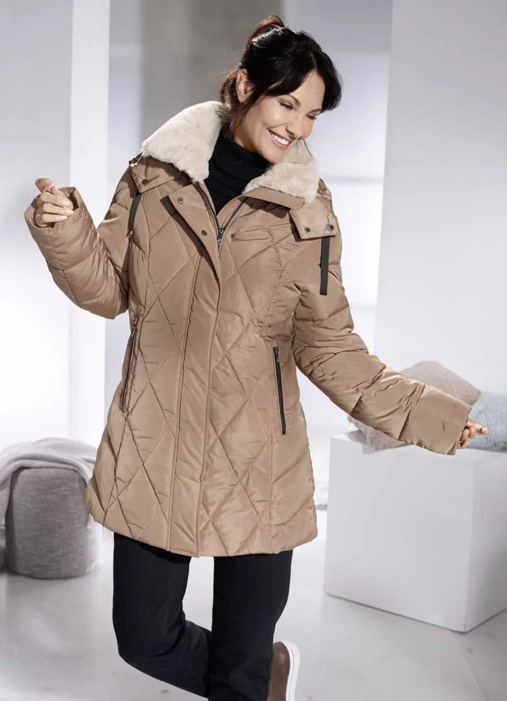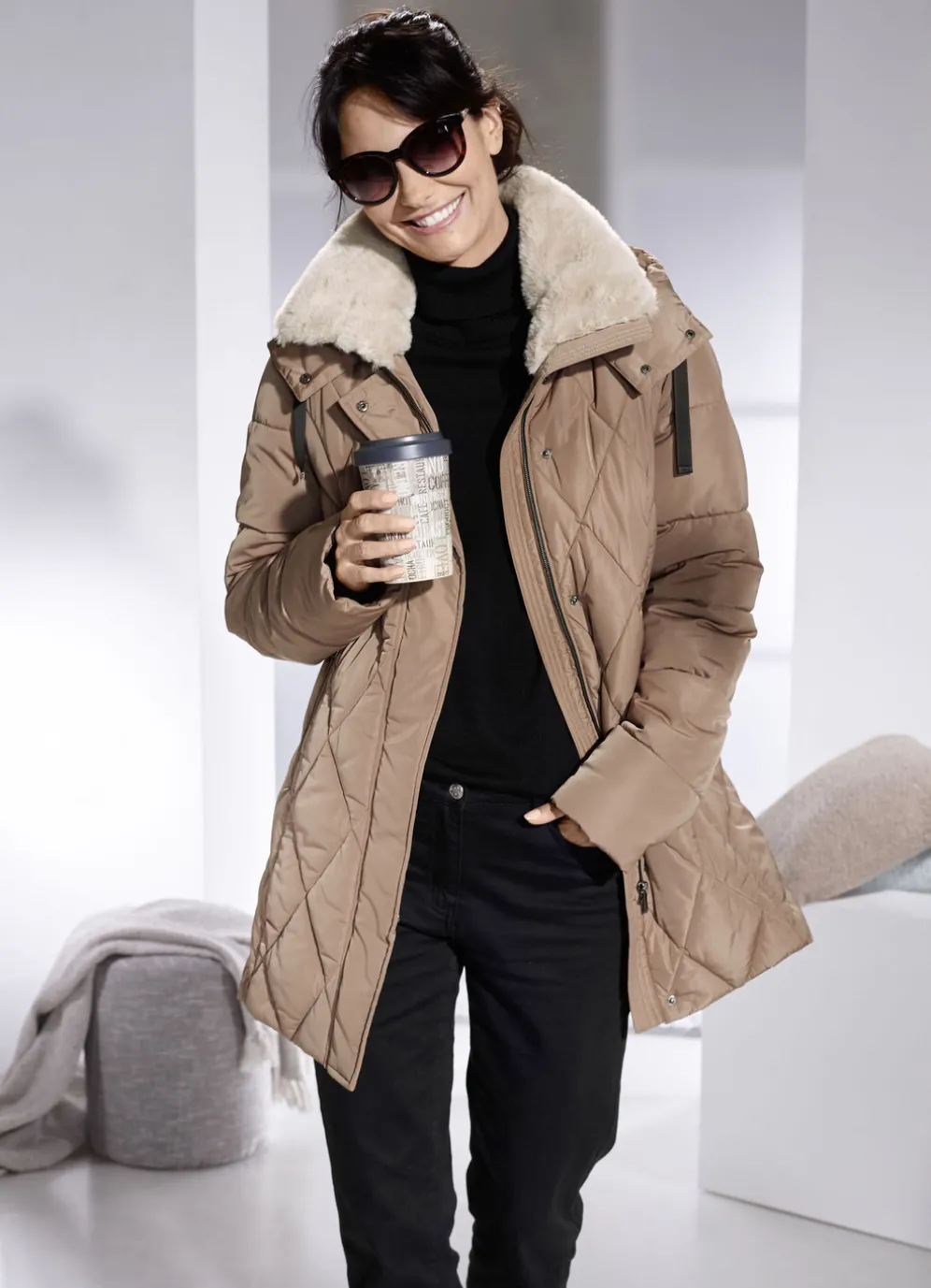 Jacke mit Kunstpelz-Besatz am Kragen in Haselnuss und in Größe 38.