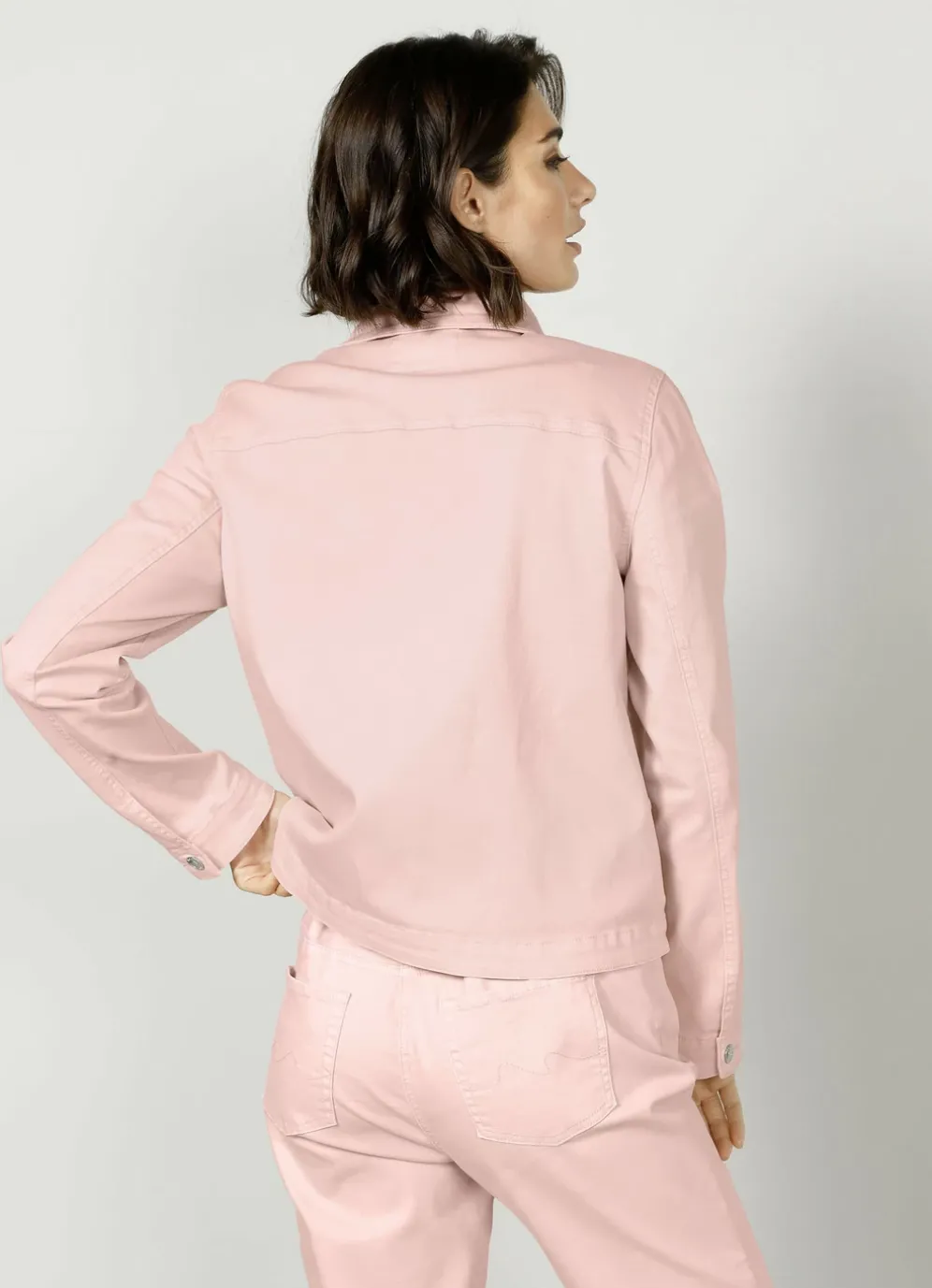 Jeansjacke mit stiltypischen Nähten in Apricot und in Größe 52.
