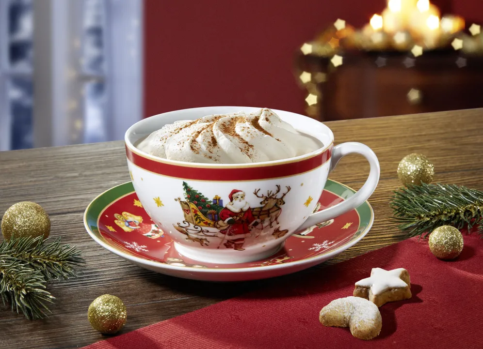 Perfekt für die Weihnachtszeit ist diese tolle Jumbotasse mit Unterteller „Happy Christmas“ aus dem Hause „Hutschenreuther“. Ein weihnachtliches Motiv ziert die Tasse rundum. So schmeckt und duftet jedes heiße Getränk gleich viel besser! Aus hochwertigem Porzellan gefertigt. Inhalt: 450 ml. Maße: ø 12 cm, Höhe 7 cm