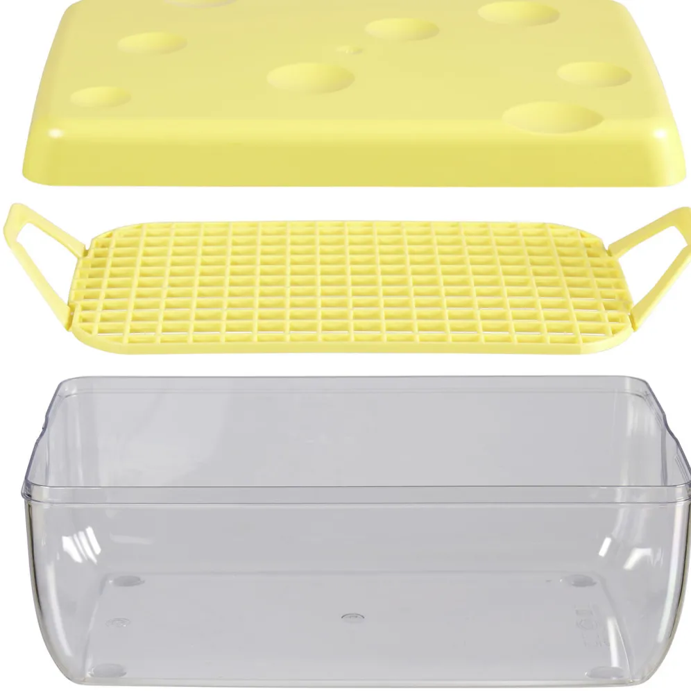 Käsebox mit Gitterboden für längere Frische in Gelb.