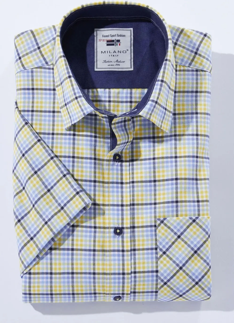 Kariertes „Milano Italy“-Hemd in 4 Farben in Gelb-Blau Kariert und in Größe M(39/40).