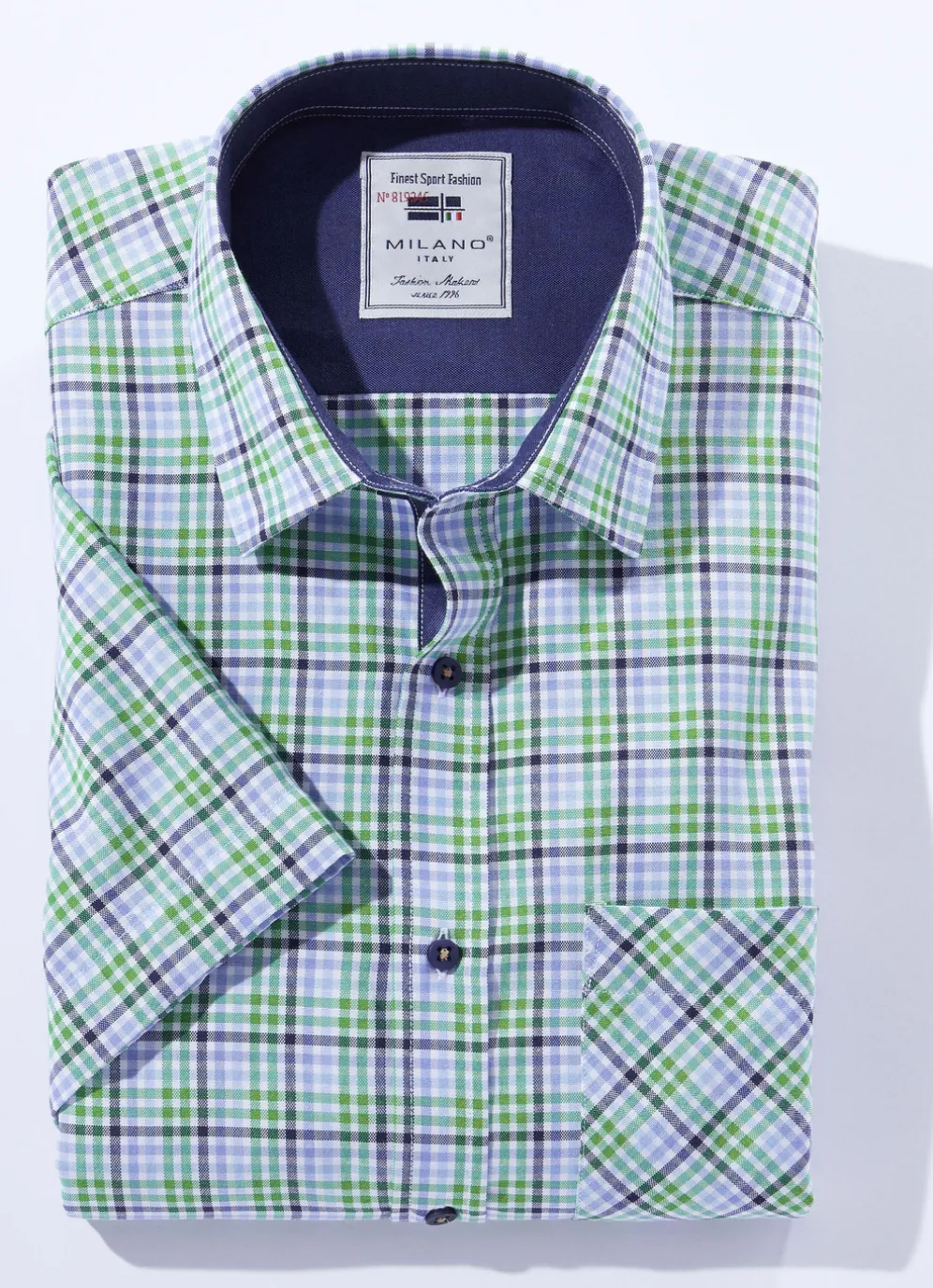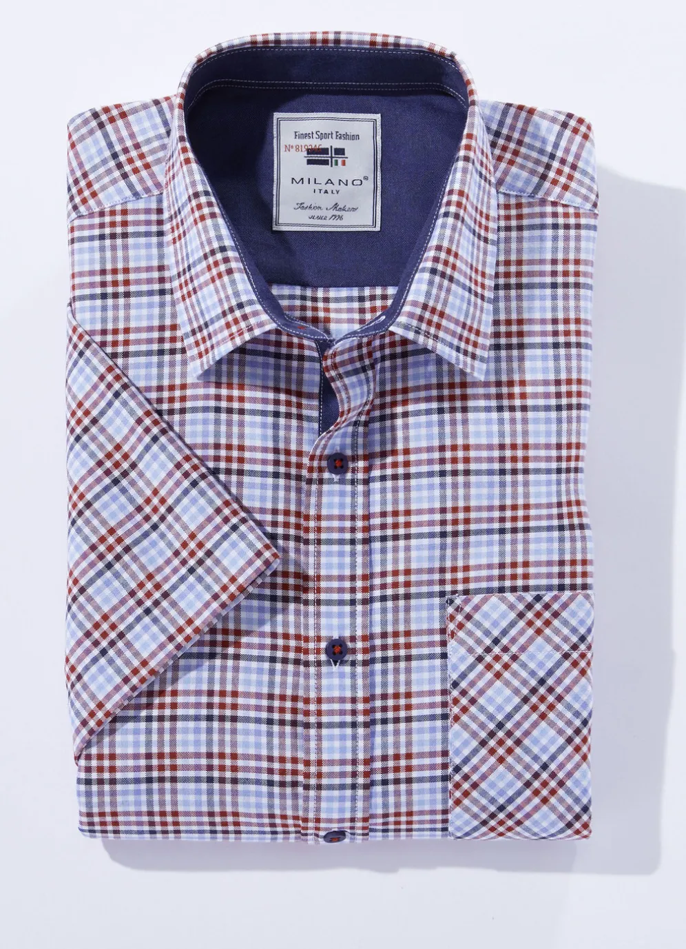 Stilsicheres Hemd von „Milano Italy“: Brusttasche, Rückenpasse sowie dekorativer Ausputz. 80% Baumwolle und 20% Polyester.
