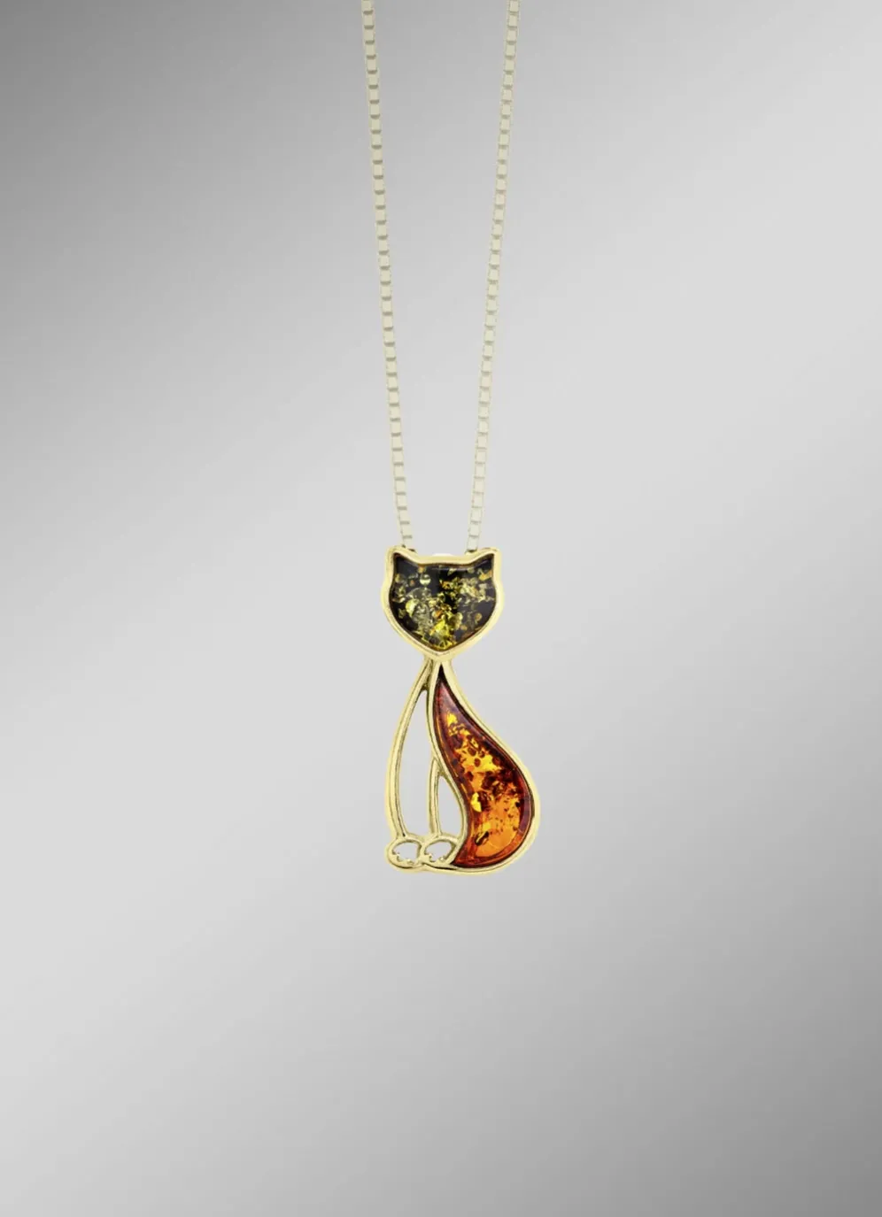 Katzen-Anhänger mit Bernstein in der Legierung Silber 925/- fein.