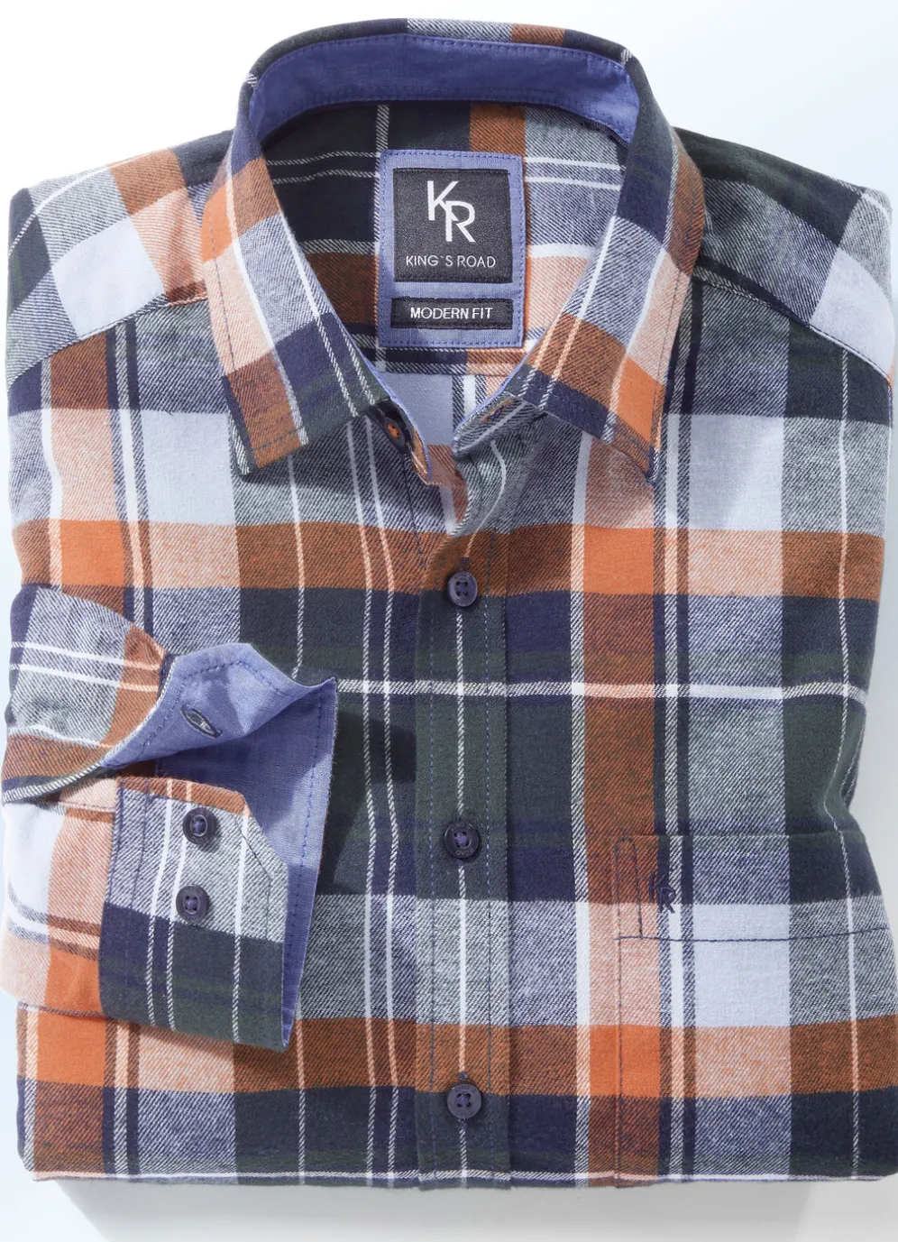 „King’s Road“-Flanellhemd in 6 Farben in Marine-Bleu-Weiss Kariert und in Größe S(37/38).