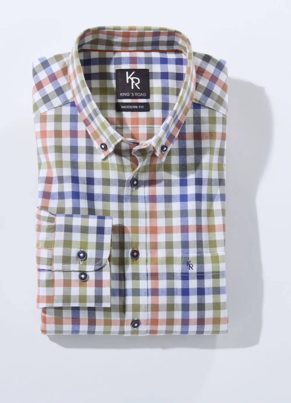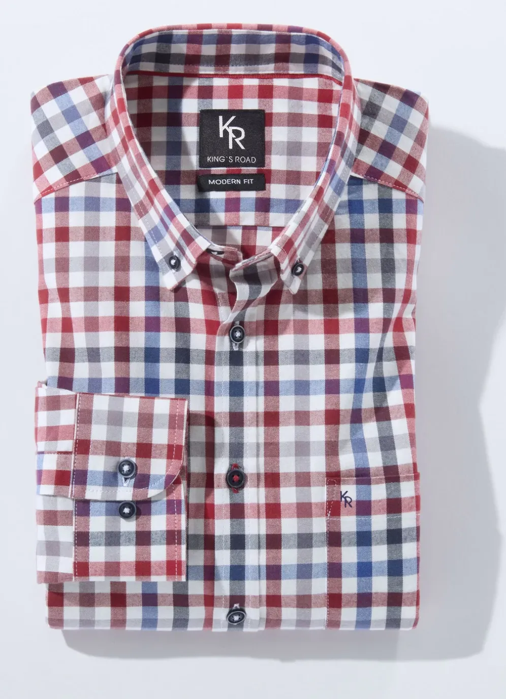 „King’s Road“-Hemd mit Button-Down-Kragen in 4 Farben in Rot-Blau-Ecru Kariert und in Größe L(41/42).