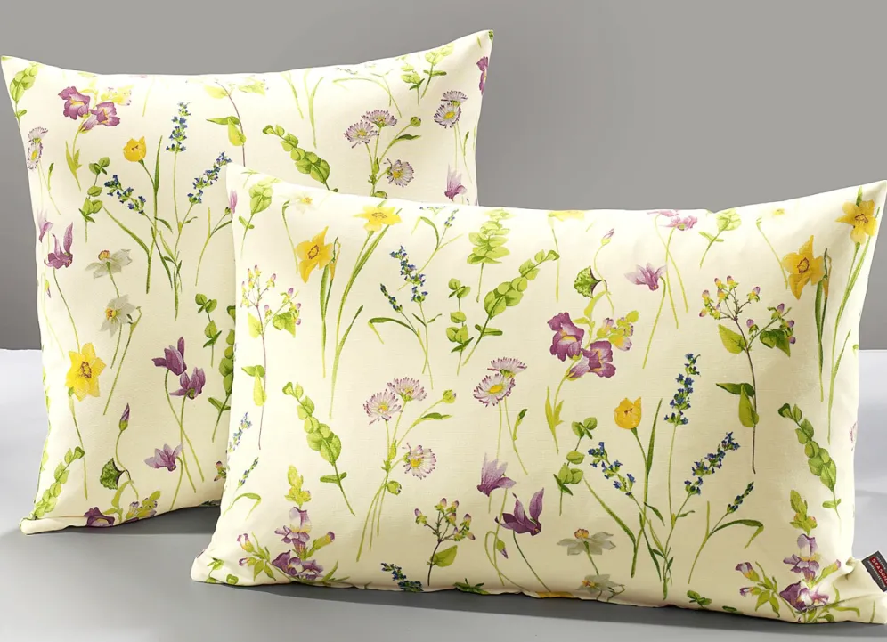 Mit dem farbenfrohen Blümchen-Dessin sind die Kissenbezüge ein toller Blickfang für Ihre Couch. Mit Reißverschluss.