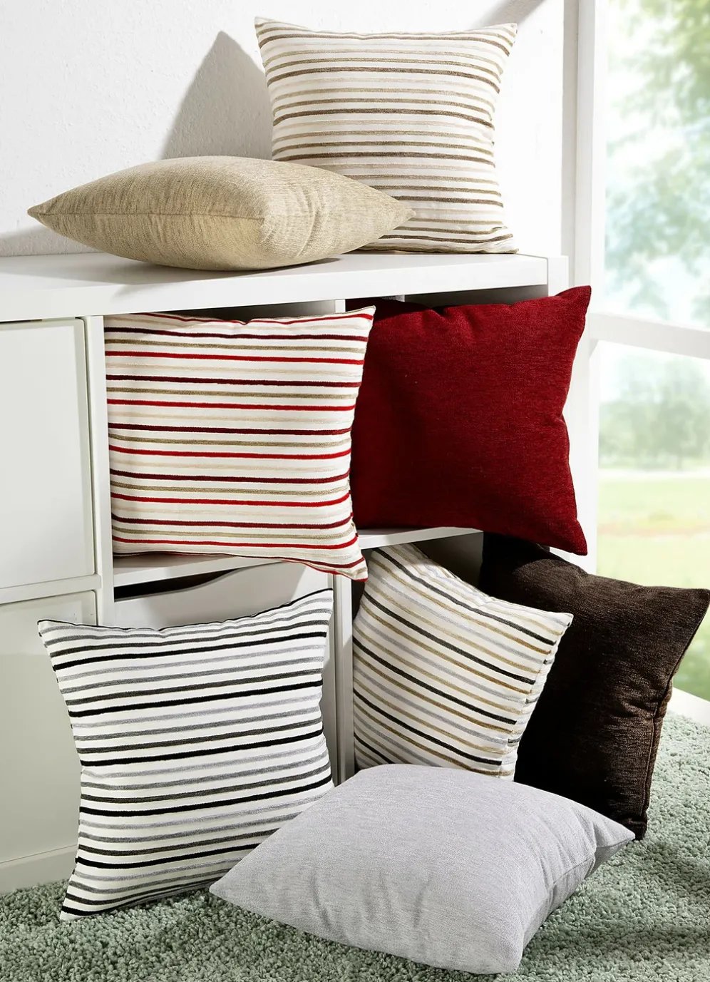 Kissenbezug im Streifen-Design in Größe 105 (40×40 cm) und in Beige.