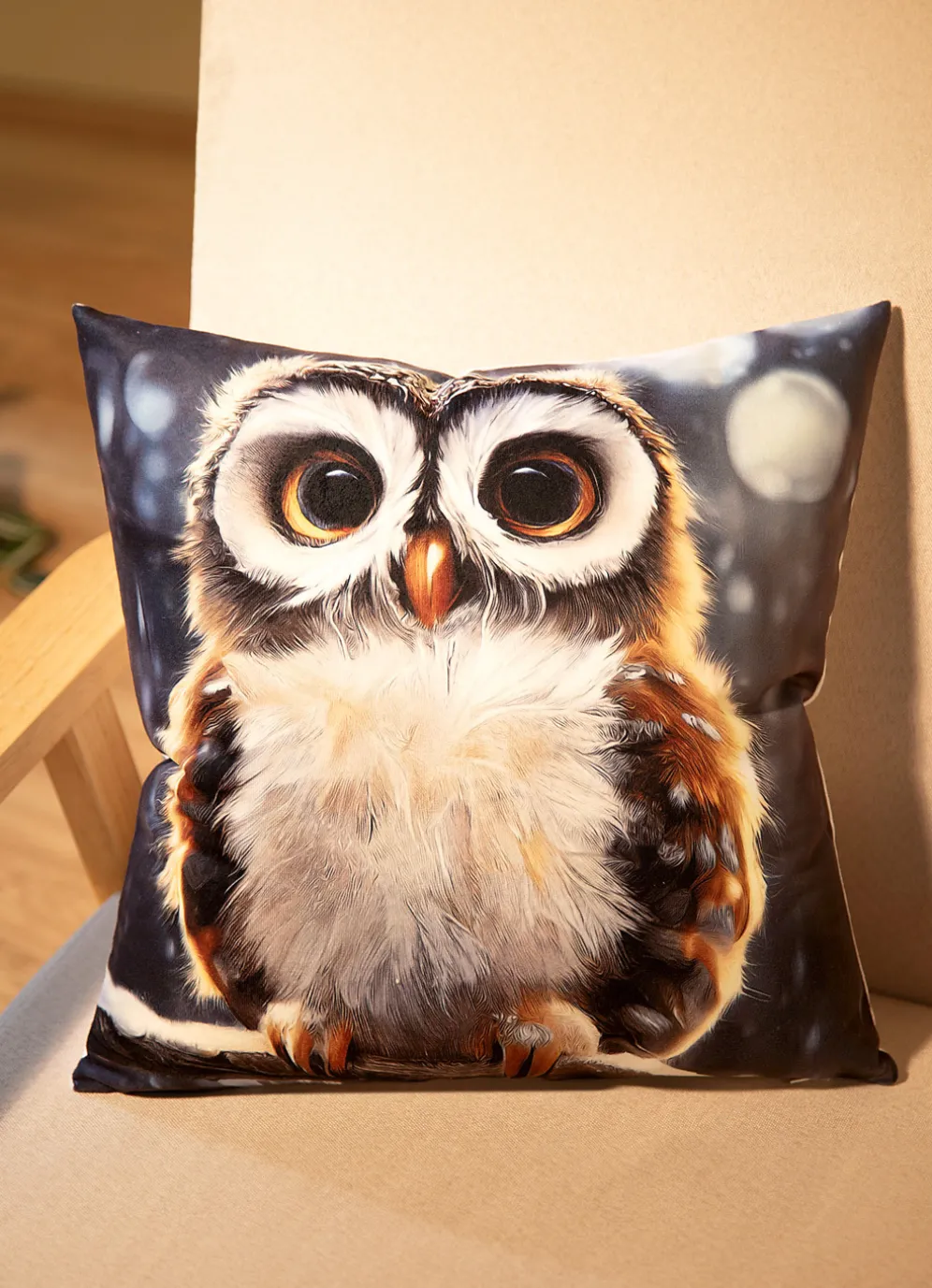 Kissenbezug in Samtoptik mit Eulen-Motiv in Bunt.