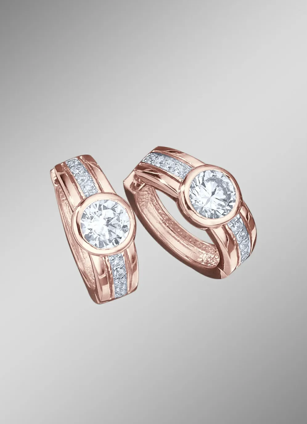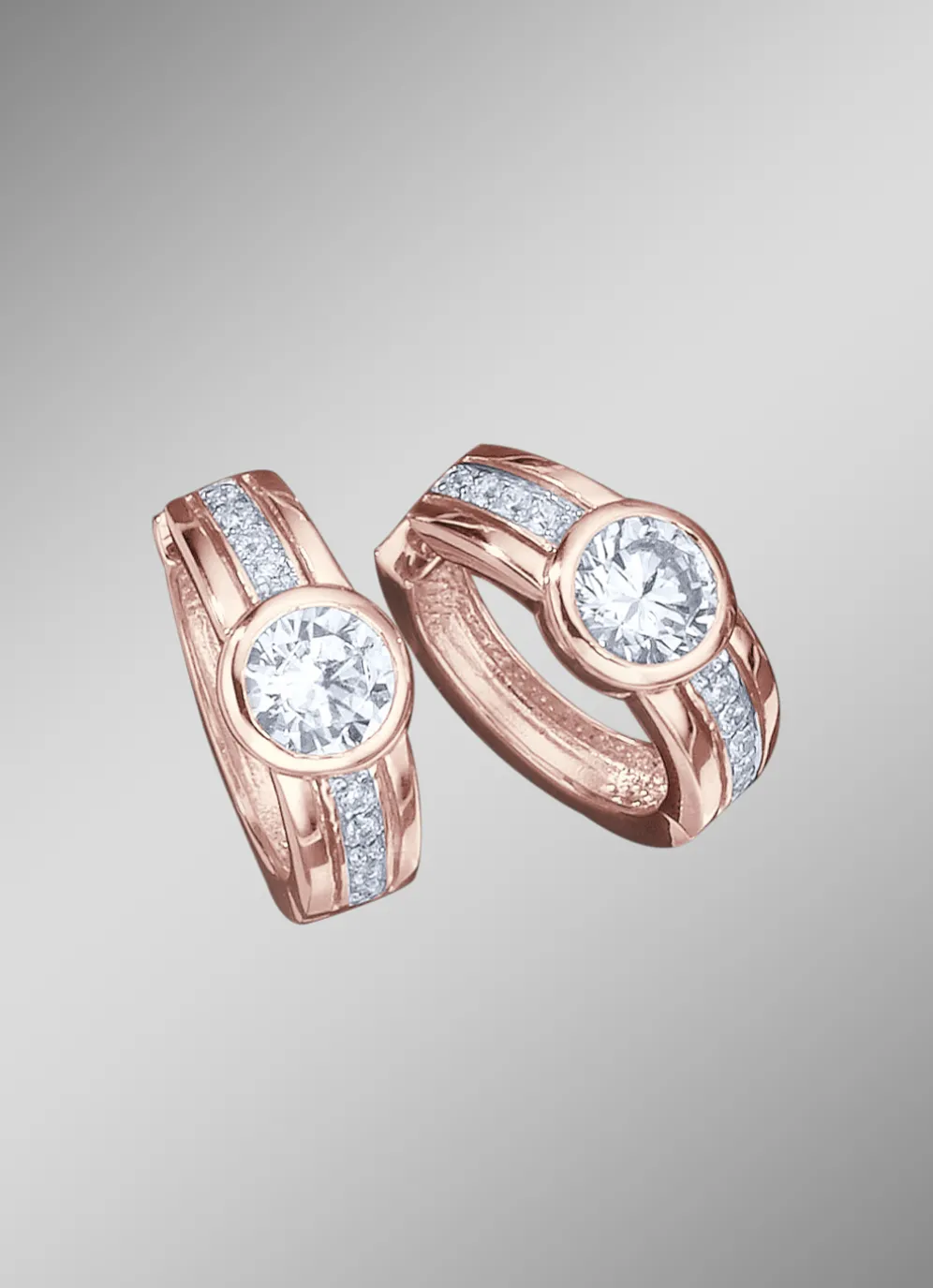 Die stilvollen Creolen aus rosévergoldetem Silber 925/- fein haben einen Durchmesser von 19 mm. Für zusätzlichen Glamour sorgt je ein funkelnder synth. Zirkonia.
