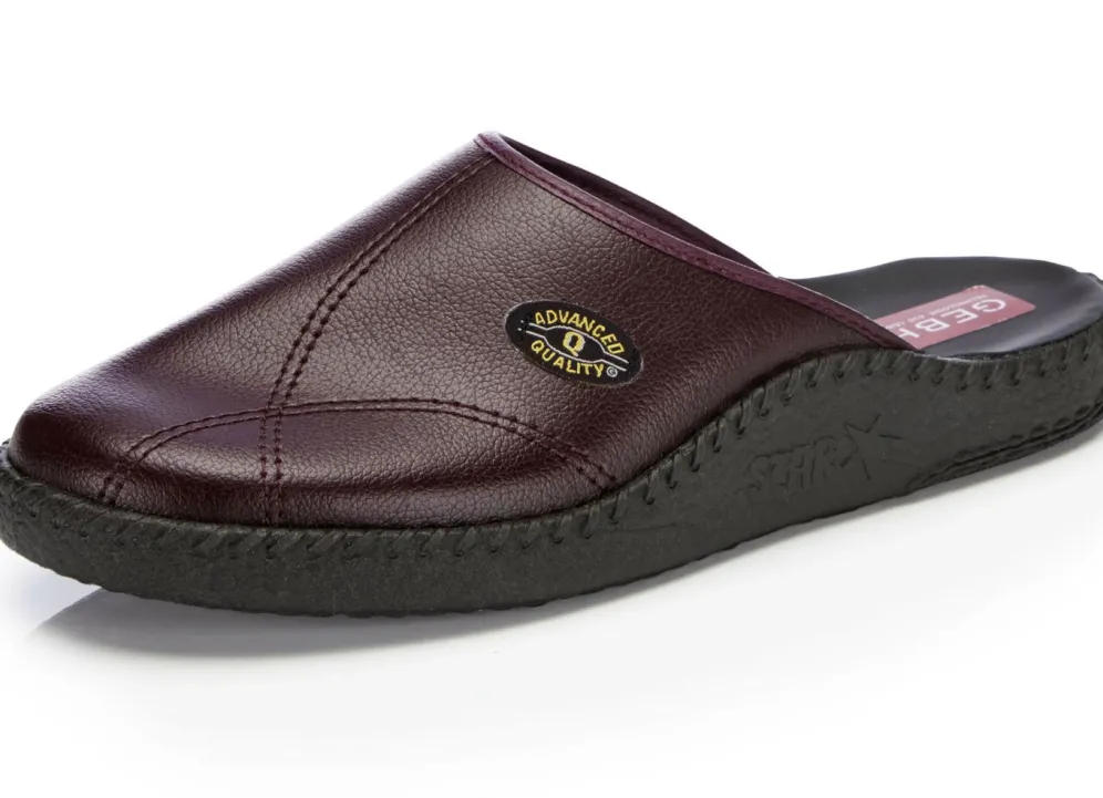 Klassische Herren-Pantoletten, mit anatomisch geformtem Fußbett in Bordeaux und in Größe 41.
