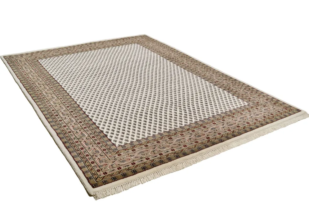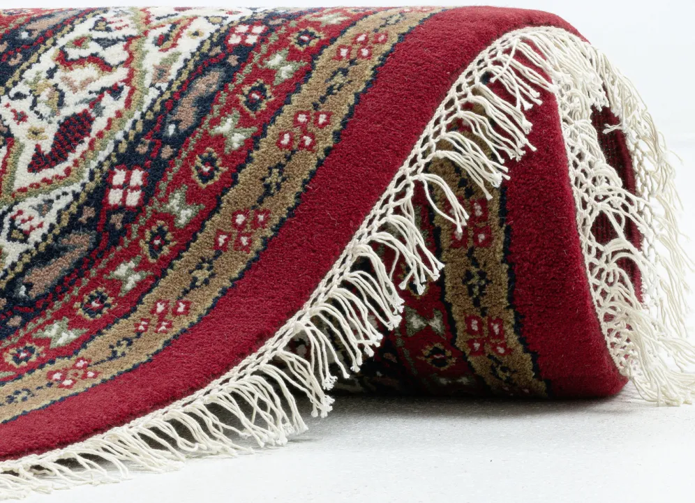 Klassischer, handgeknüpfter Orientteppich aus Indien, mit dem berühmten Mir-i-boteh-Muster. Florhöhe 12 mm Qualität: Dichter Flor aus 100% Schurwolle, mit ca. 140.000 Knoten pro m²