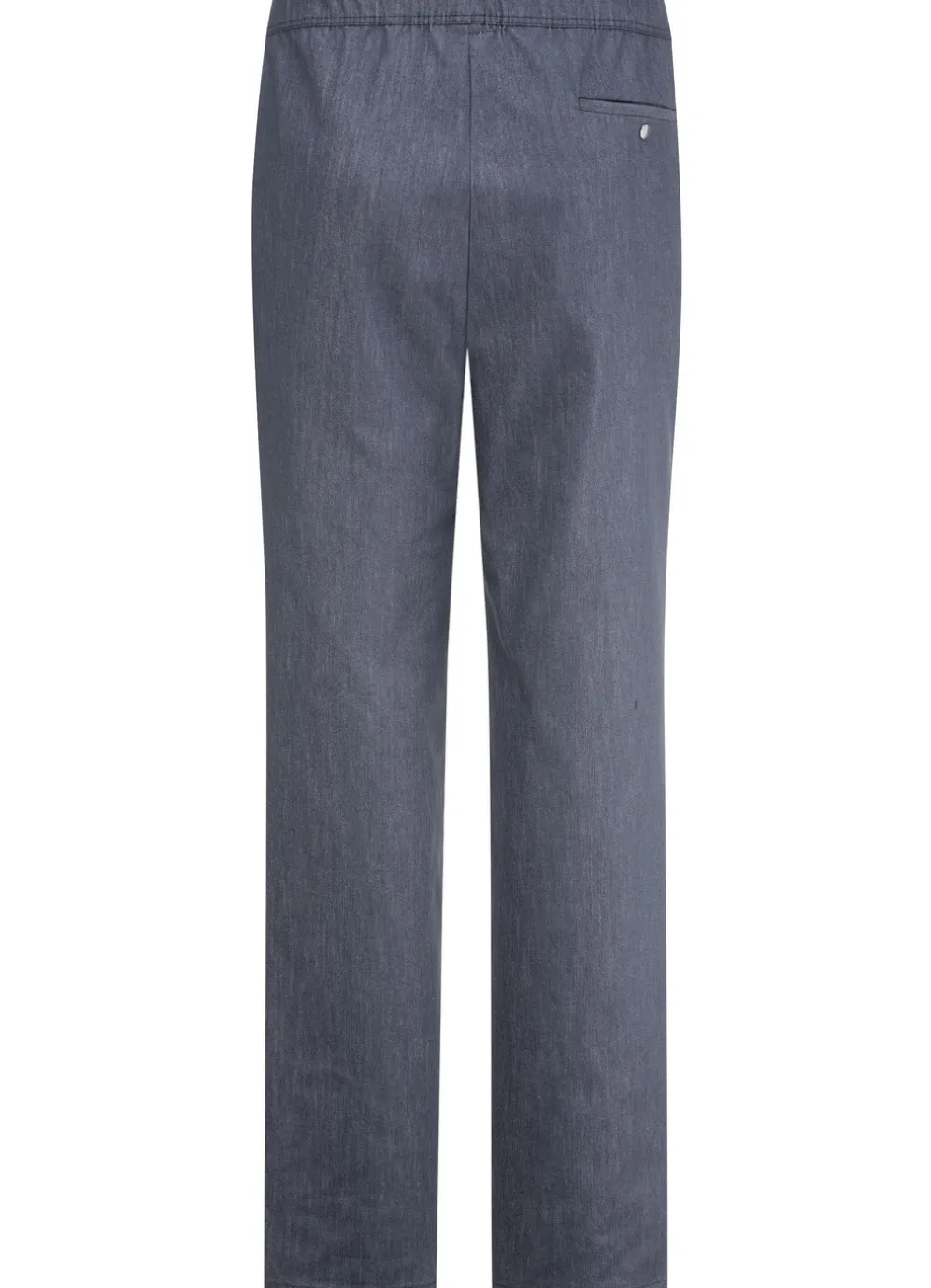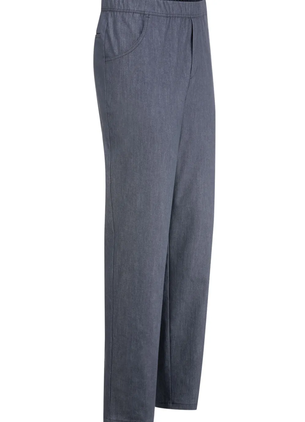 Stilsichere Edel-Schlupfjeans mit Gummibund rundum, Zierblende im Vorderteil, Seitentaschen sowie Gesäßpaspeltasche mit Druckknopfverschluss.