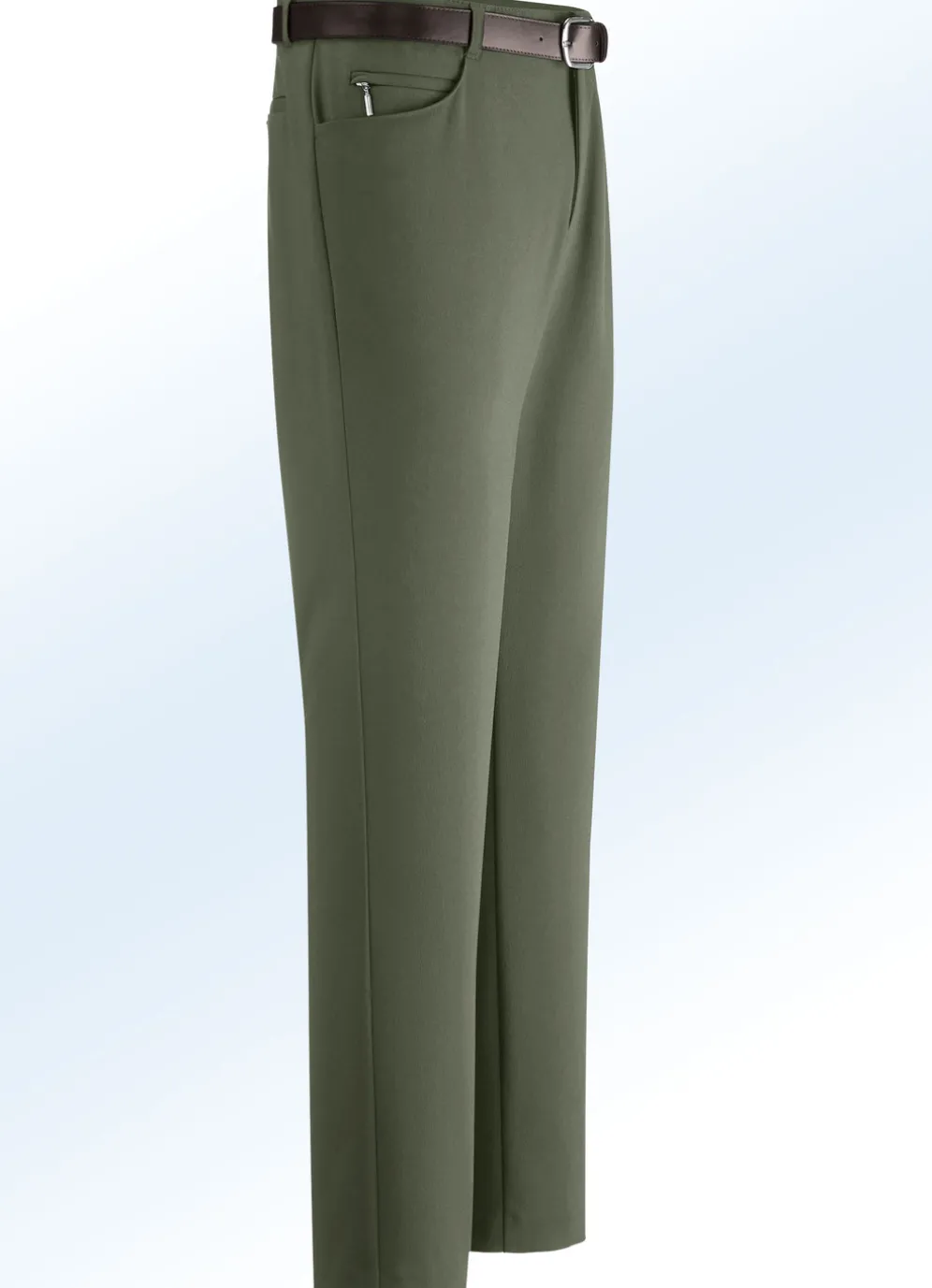 Diese sportive Hose zeigt sich mit Dehnbund, Seitentaschen, Gesäßpaspeltaschen mit Knopfverschluss sowie Tresortasche mit Reißverschluss. Ohne Gürtel.