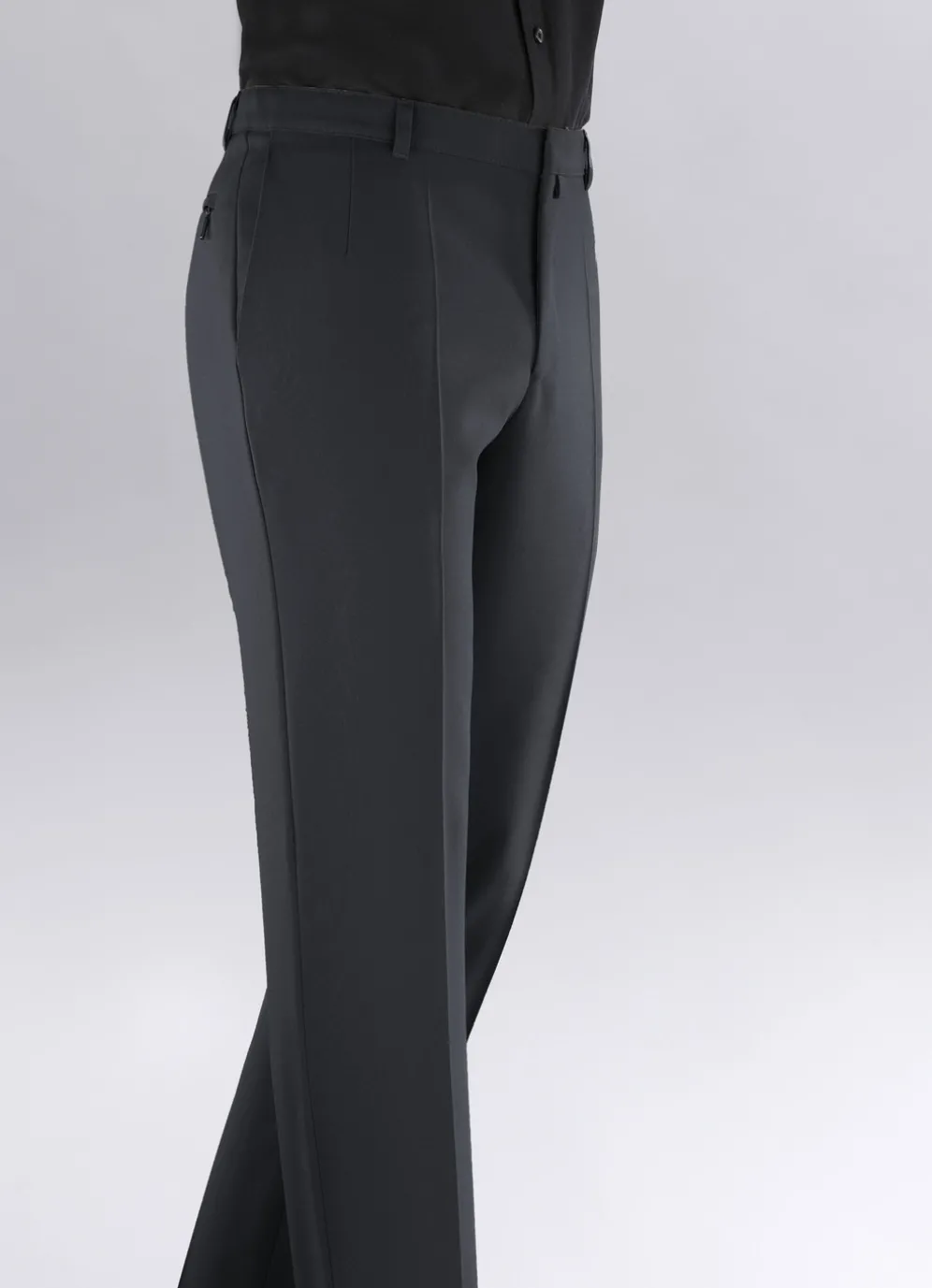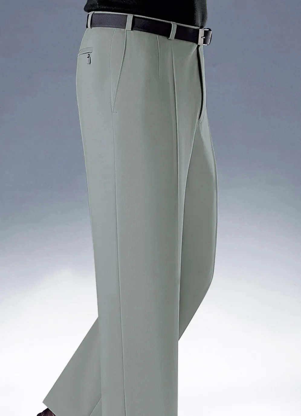 Komfortable Dehnbundhose mit Seitentaschen sowie Gesäßpaspeltasche mit verdecktem Reißverschluss. Ohne Gürtel.
