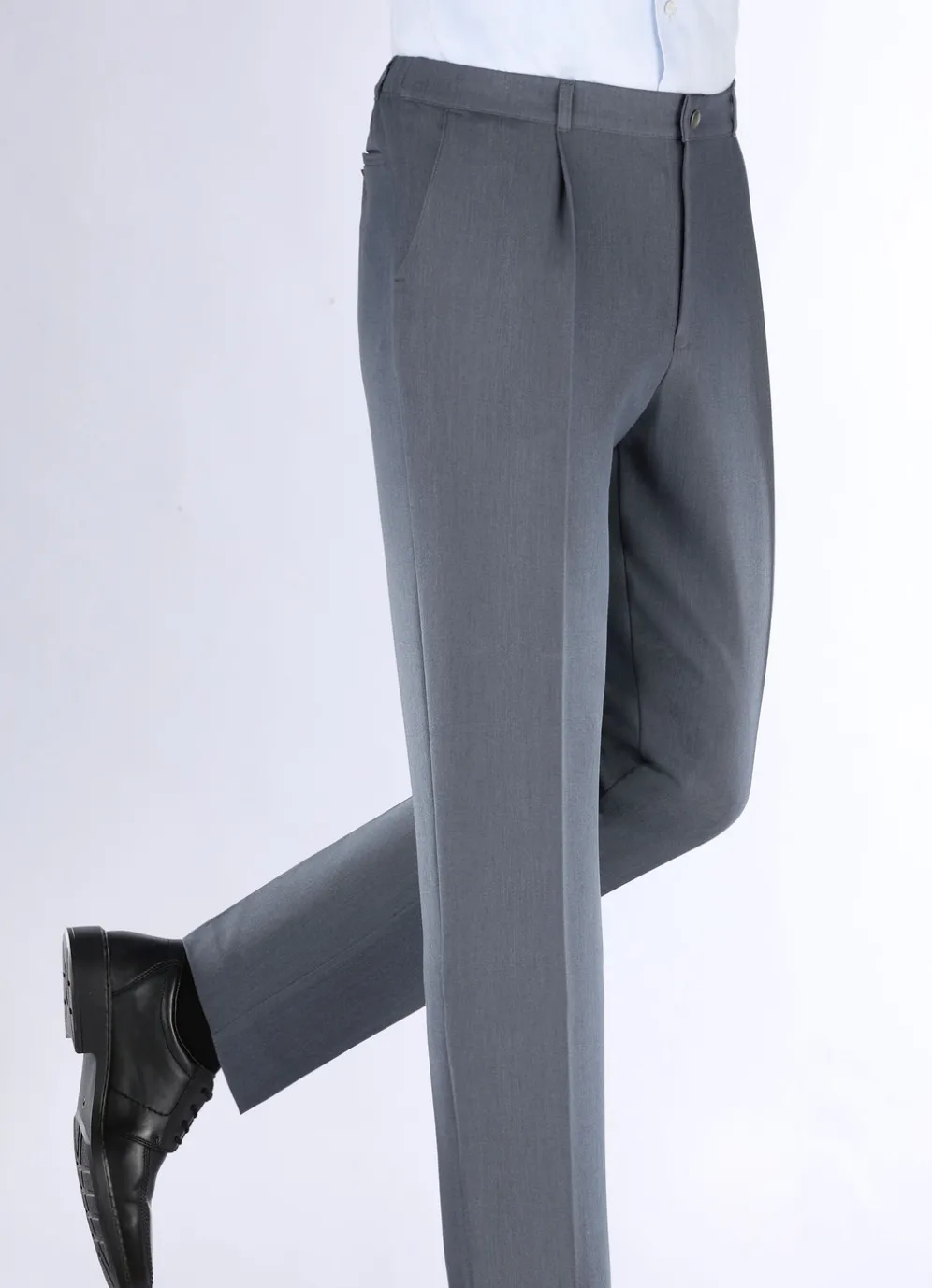 „Klaus Modelle“-Hose mit Bundfalten in 3 Farben in Rauchblau Meliert und in Größe 54.