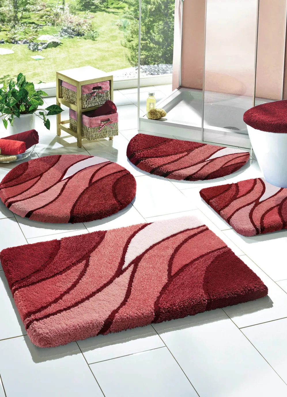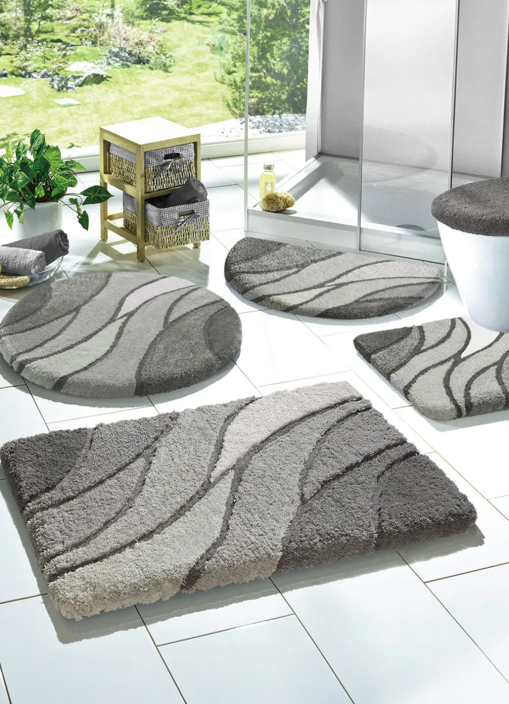 | Size | 100 (Vorleger halbrund, 50/ 80 cm), 101 (Teppich, 50/ 90 cm), 102 (Teppich, 60/100 cm), 103 (Teppich, 70/120 cm), 105 (Teppich rund, ø 90 cm), 108 (Stand-WC-Vorleger, 50/ 55 cm), 109 (Hänge-WC-Vorleger, 50/ 55 cm), 112 (WC-Deckelbezug, 47/ 50 cm) |