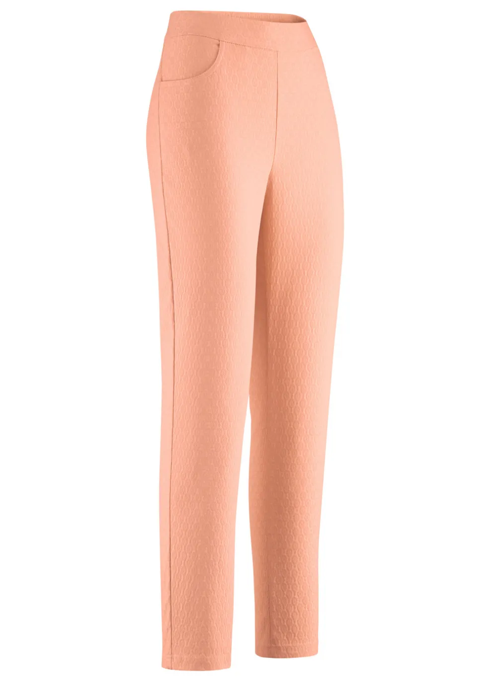 Ihr Modell BECKY – attraktive, knöchellange Hose in bequemer Schlupfform, glatt anliegend dank des innenliegenden Rundum-Dehnbundes sowie Seitentaschen. Innenbeinlänge ca. 71 cm, Fußweite ab 34 cm.