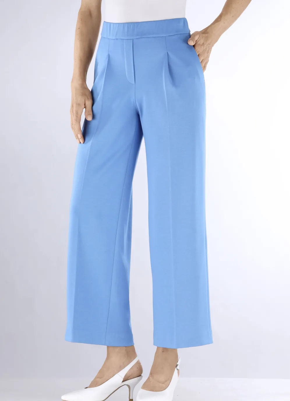 Knöchellange Hose mit weitem Bein in Azurblau und in Größe 36.
