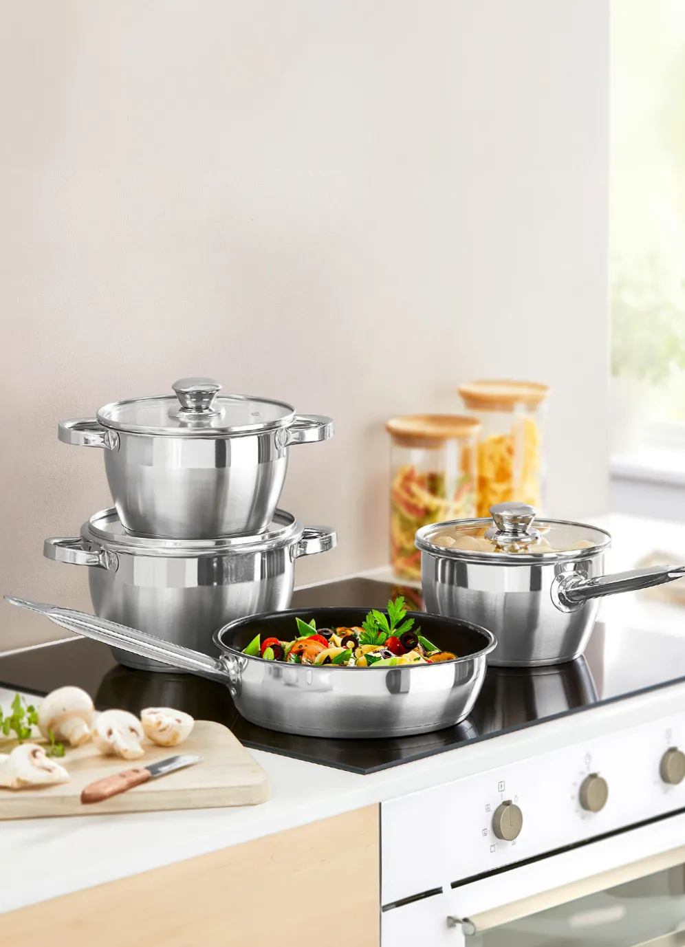 Kochgeschirr aus hochwertigem rostfreiem Edelstahl – die perfekte Ergänzung für Ihre Küche. Ideal für Single-Haushalte oder zum Zubereiten kleinerer Mengen. Auch ideal zum Servieren. Edelstahlgriffe werden nicht heiß. Spülmaschinengeeignet. Backofengeeignet bis 220°C und Gefrierfachgeeignet. Für alle Herdarten, auch Induktion
