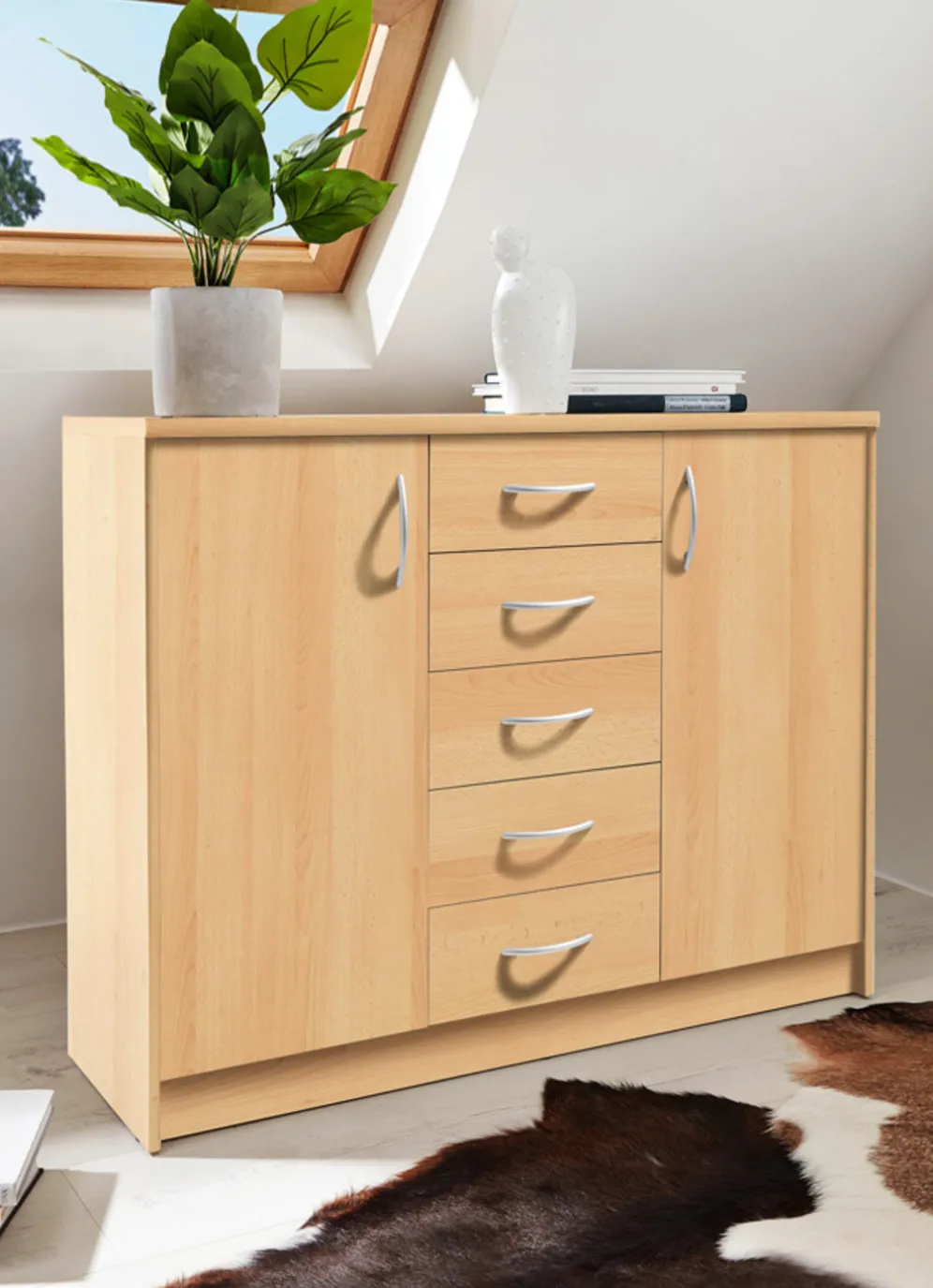 Mit dieser kombifreundlichen Kommoden-Serie werten Sie jeden Wohnraum auf! Erhältlich in ansprechenden Dekors. Mit silberfarbenen Griffen. Mit Aufbau-Anleitung