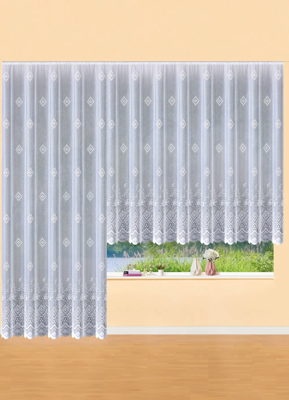 Ein Blickfang ist dieser aparte, kombifreundliche Store mit Universalschienenband, schönen Verzierungen und gebogtem Abschluss. Qualität: Jacquard aus 100% Polyester.
