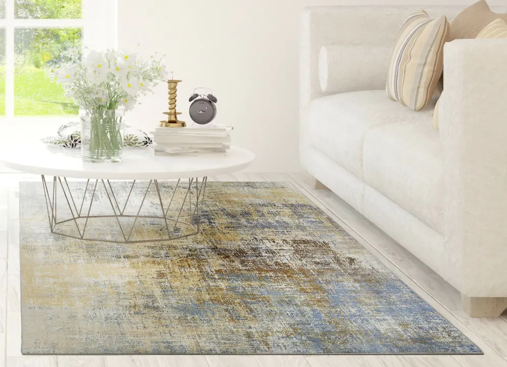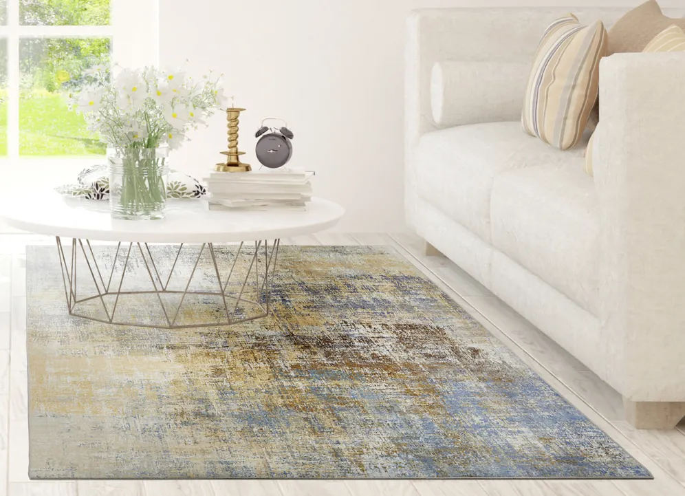 Kombistarke Brücken und Teppiche mit flachem Flor in Größe 113 (Brücke, 80×150 cm) und in Gelb-Blau.