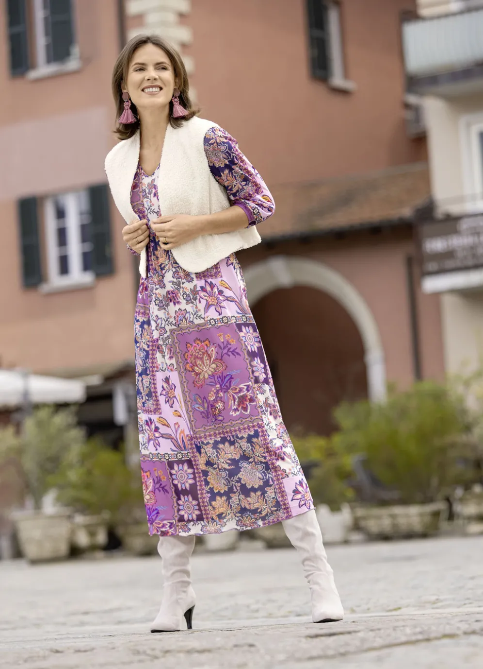 Die Qualität: Feiner Bouclé aus 100% Polyester; Twill-Futter aus 65% Baumwolle und 35% Polyester