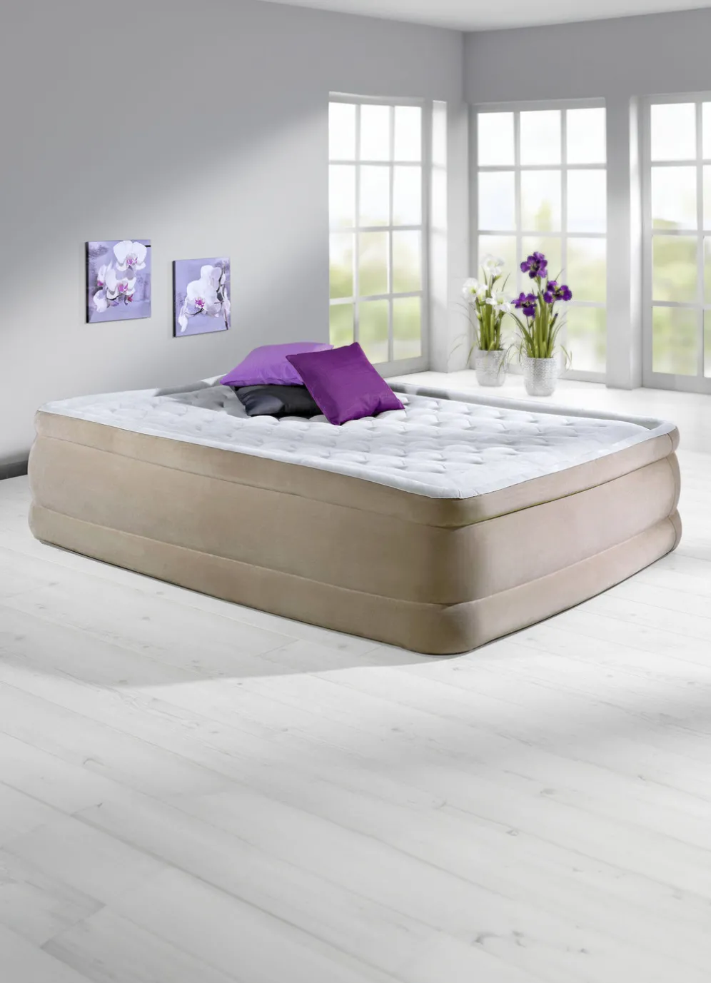 Dieses Komfort-Luftbett wird Sie begeistern! Durch die revolutionäre Innenkonstruktion der Fiber-TechTM-Technologie, bei der Tausende von hochfesten Polyesterfasern verarbeitet wurden, entsteht die perfekte Kombination von struktureller Stabilität und stützendem Halt. Die integrierte Elektropumpe ermöglicht schnelles Aufblasen (ca. 2,5–4 Min. je nach gewünschtem Härtegrad) und Entleeren. Mit textiler Liegefläche sowie Tragetasche zum Aufbewahren und Transportieren. Liegehöhe je 46 cm