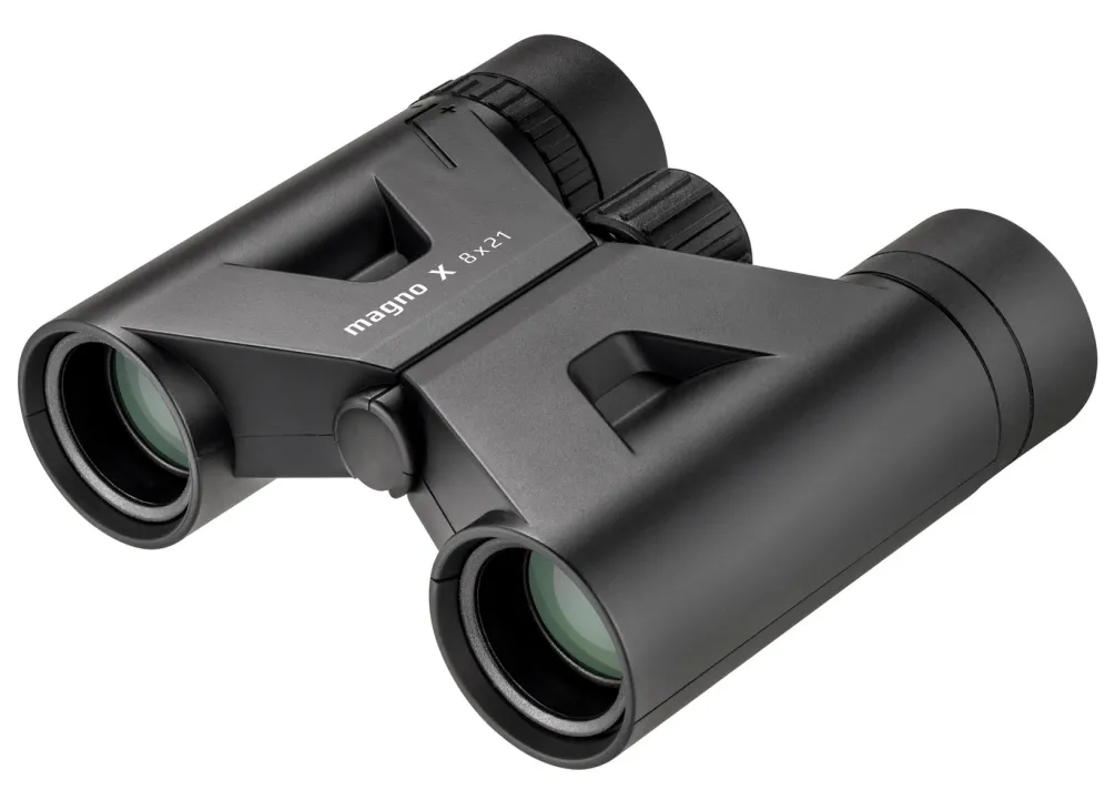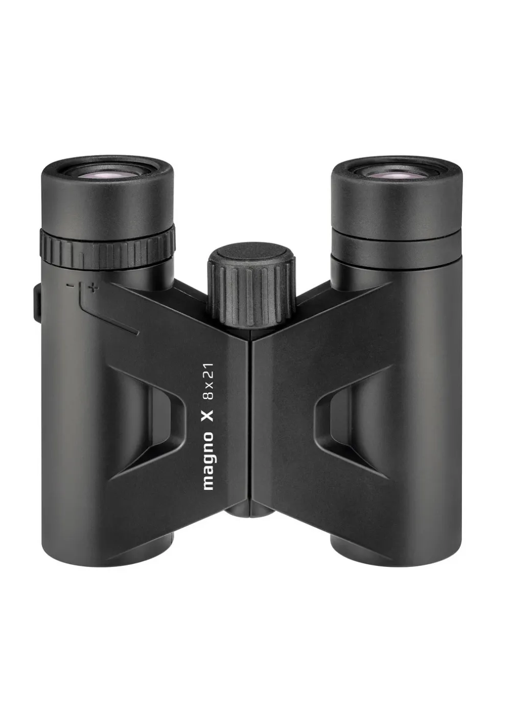 Hochwertiges Fernglas, 180 Gramm leicht und handlich geeignet für einen Spontanausflug in die Natur, Urlaub oder Städtetrip. Das kompakte außergewöhnliche Design macht das magno® X zum Begleiter für jede Gelegenheit. Mit 8-fach Vergrößerung, Objektiv 21mm Durchmesser, Nahpunkt 2,5 m. Sehfeld: 105/1000 m. Brillenträger-Okulare bieten auch (Sonnen)-und Brillenträgern ein optimales Sichtfeld. Inklusive Tasche und Tragekordel