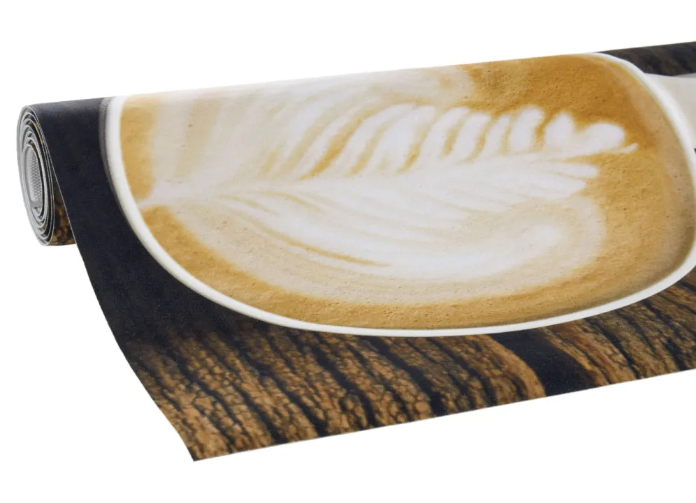 Küchenläufer Kaffeetassen, mit rutschhemmender Rückseite in Braun.