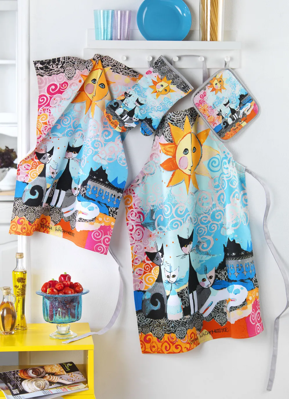 Nicht nur für Katzenfans ein absolutes Muss! – Tolles Küchenprogramm mit eindrucksvollen Motiven nach den Entwürfen der Künstlerin Rosina Wachtmeister. Die Qualität: 100% Baumwolle. Waschbar bis 40 °C.