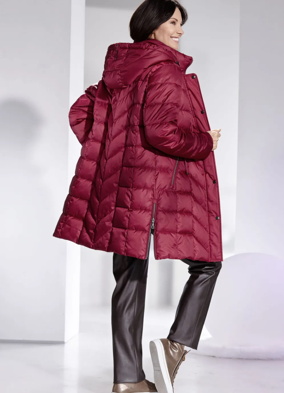 Kurzmantel mit abnehmbarer Kapuze in Rubinrot und in Größe 36.