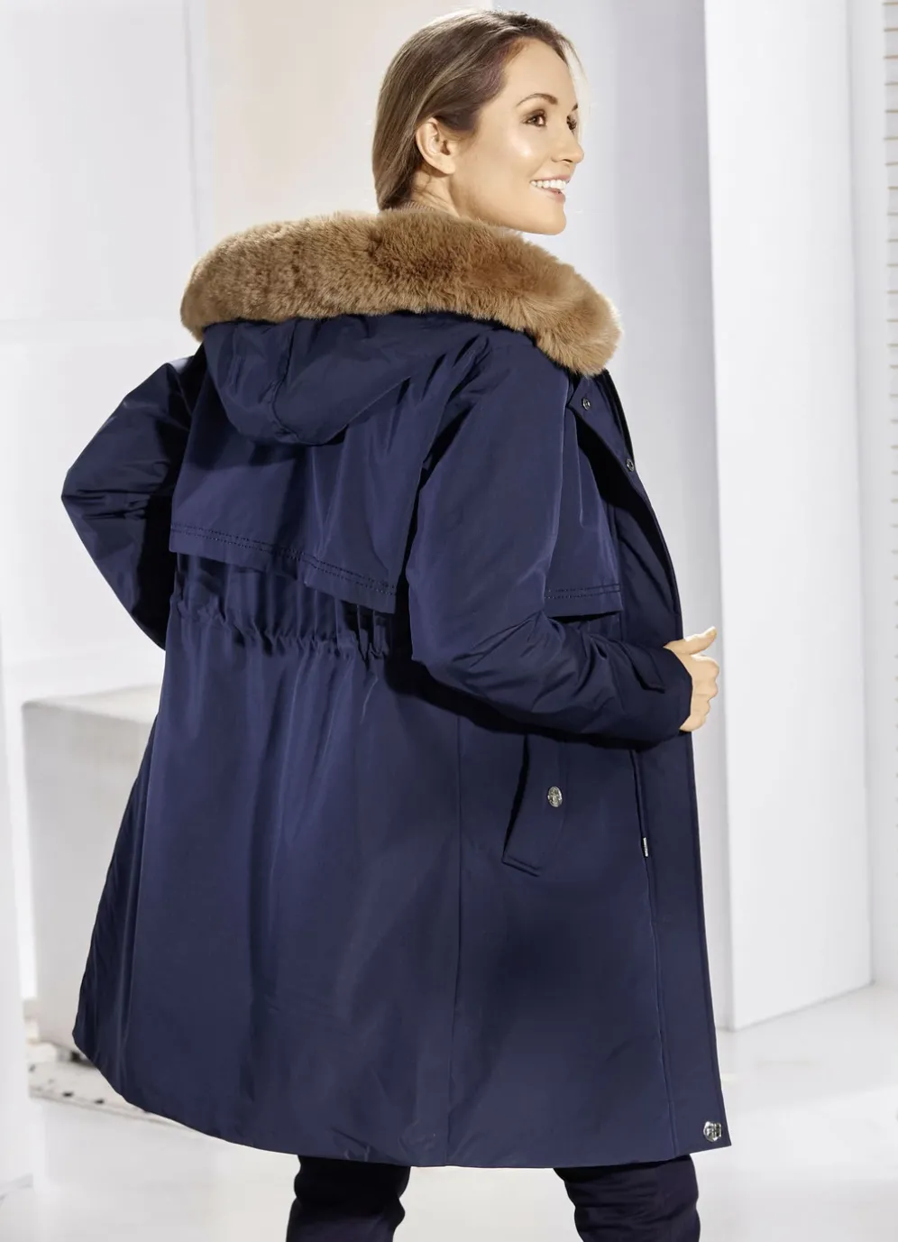 - feste Kapuze mit abnehmbarem Kunstpelz-Besatz